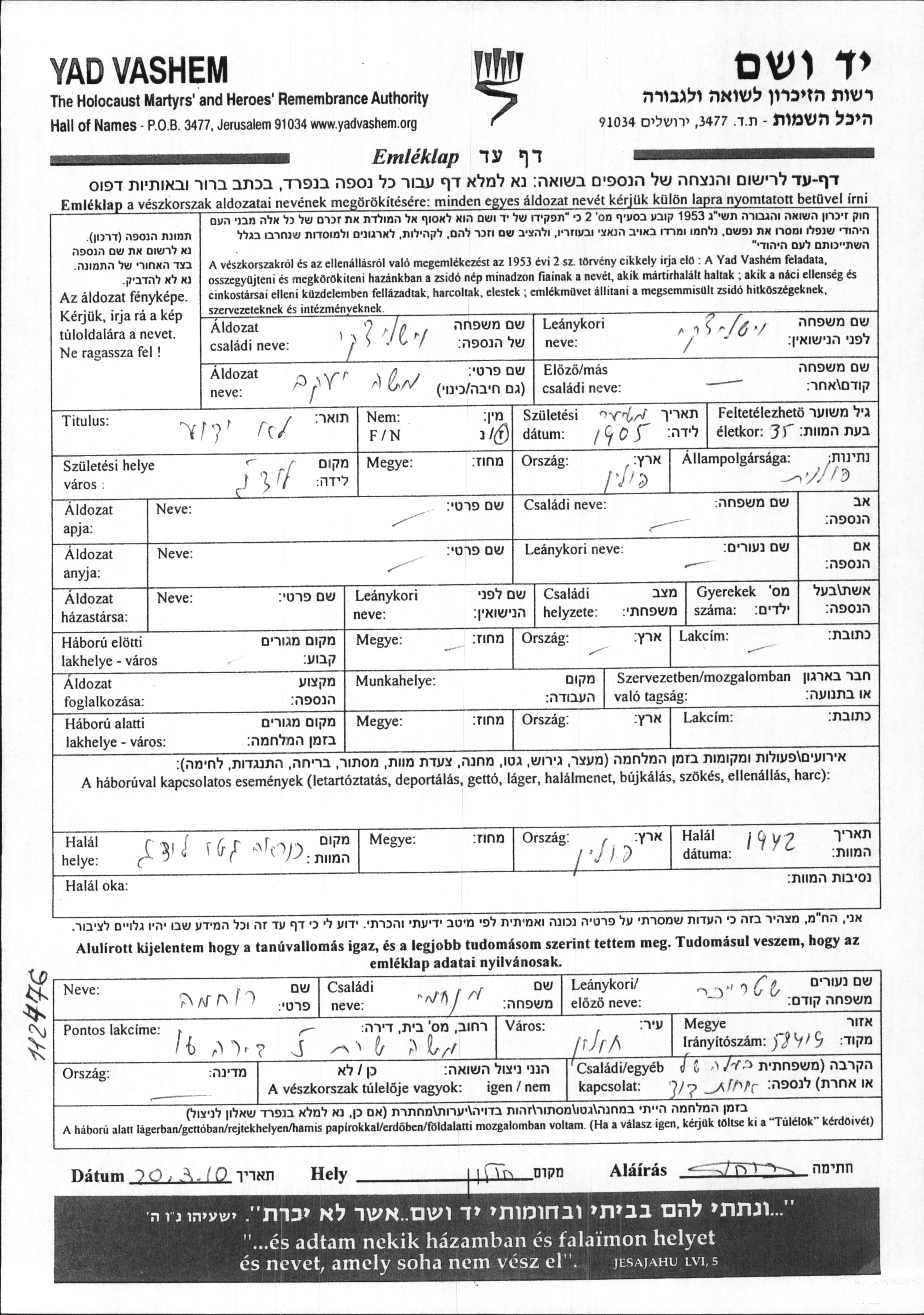 Moshe Yaakov wurde in der Schoah ermordet. Todesort: Lodz, Polen im Jahr 1942.