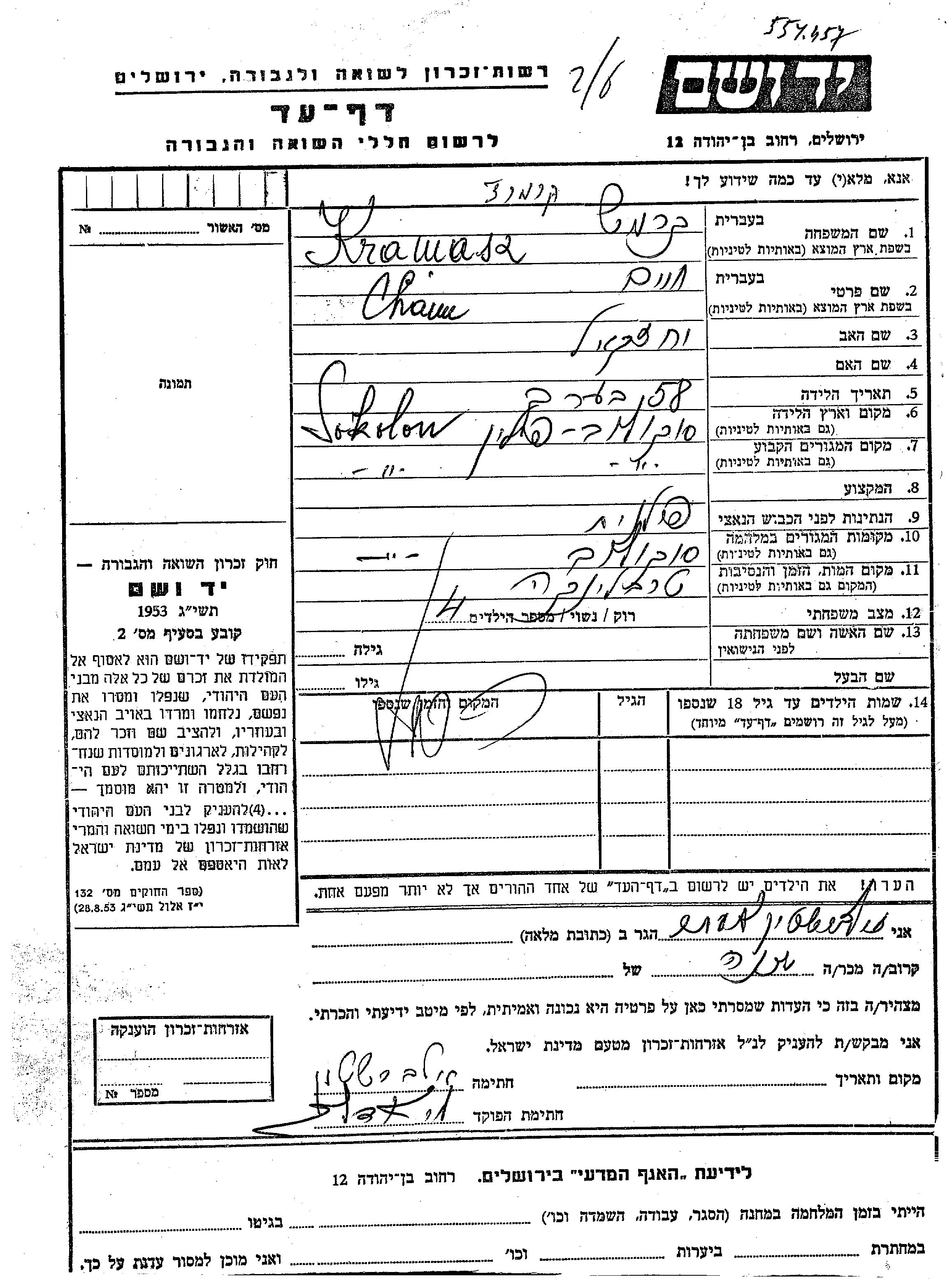 Kramarz Kermesh Chaim Sokolow Podlaski, Polen Gedenkblatt