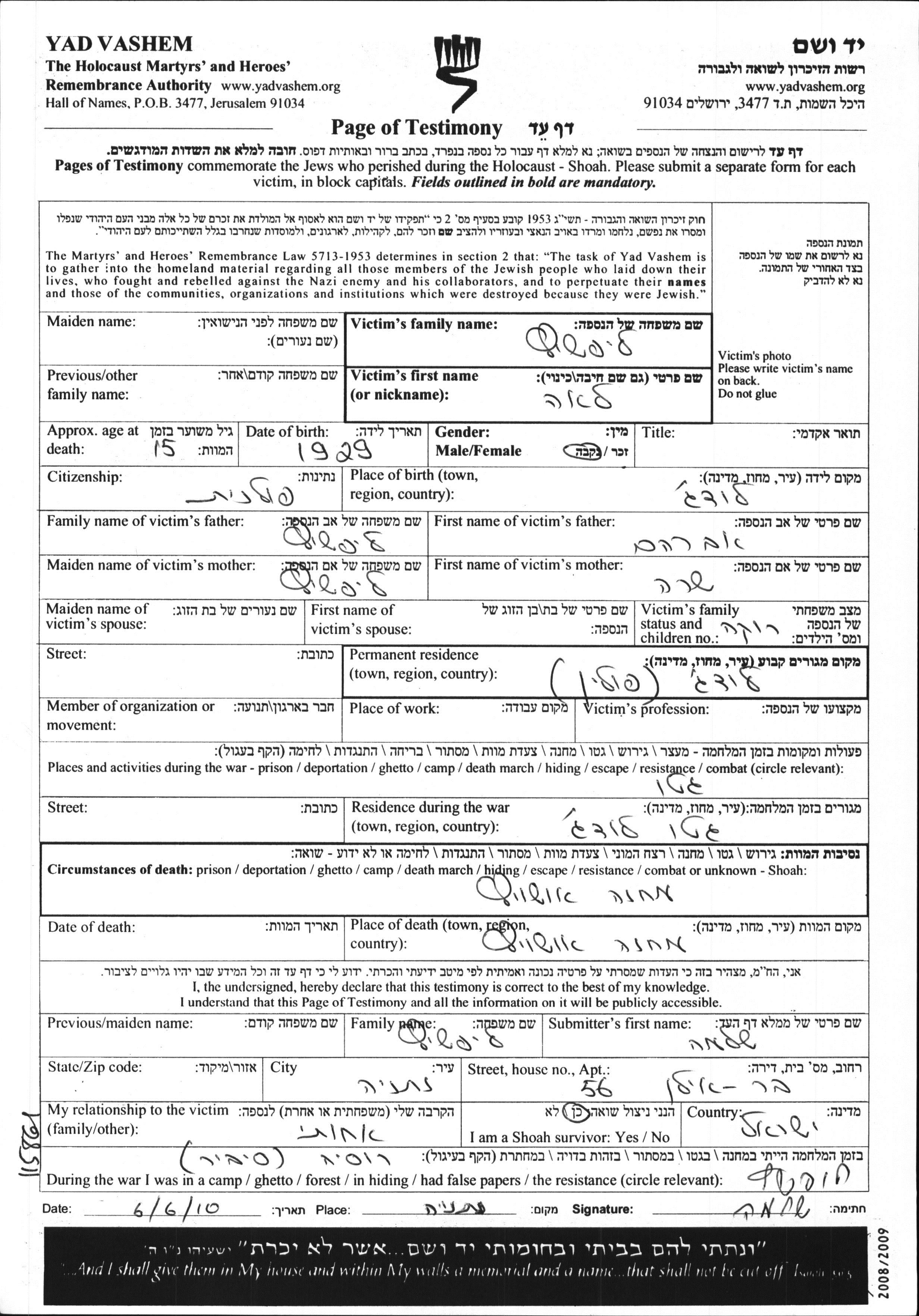 Lea Lifshitz wurde im Jahr 1929 in Lodz, Polen geboren. Sie war die Tochter von Avraham und Sara. Sie war Jugendliche/-r. Vor dem Zweiten Weltkrieg lebte sie in Lodz, Polen. Während des Krieges war sie in Lodz, Polen.