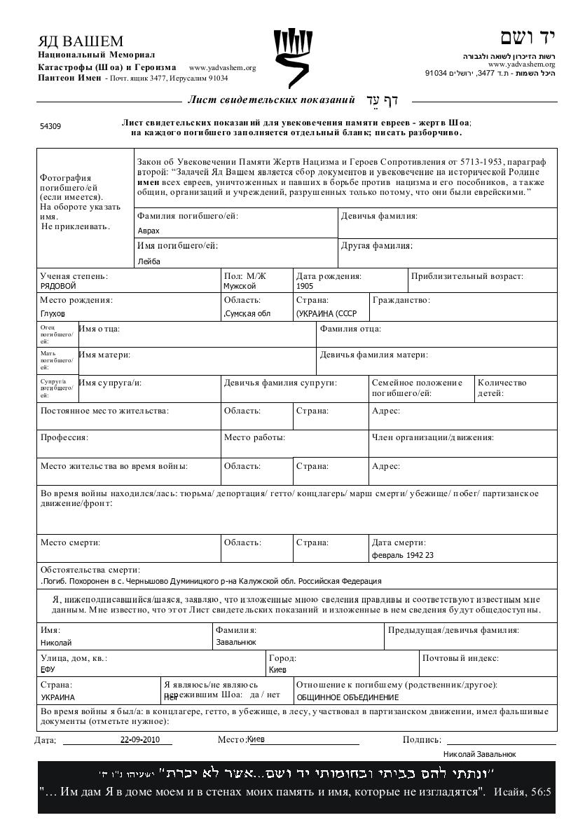 Gefreiter Avrakh im Militärdienst umgekommen. Todesort: Chernysheno, Russland (UdSSR) im Jahr 23/02/1942.