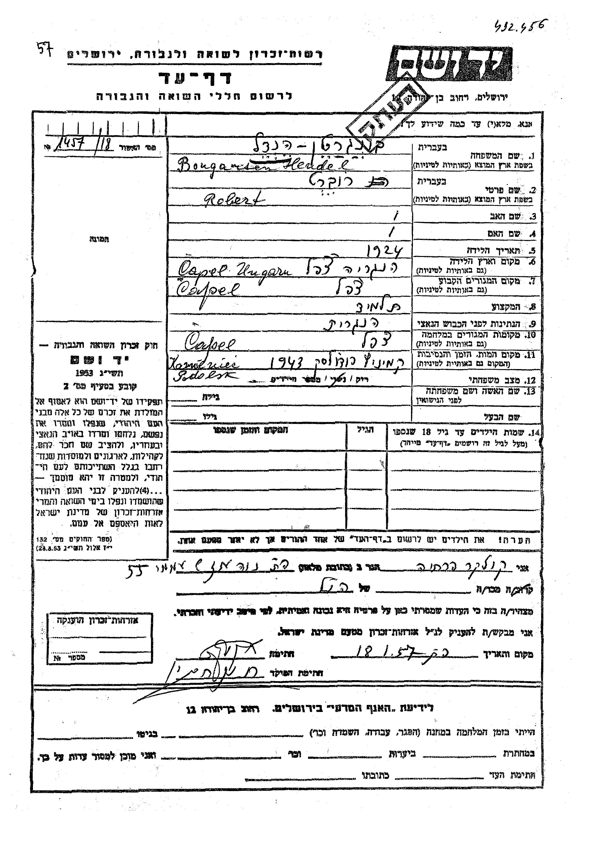 Robert Hendel Bongarten wurde im Jahr 1924 in Capel, Ungarn geboren. Er war Schüler/-in und Ledig. Vor dem Zweiten Weltkrieg lebte er in Capel, Ungarn. Während des Krieges war er in Capel, Ungarn.