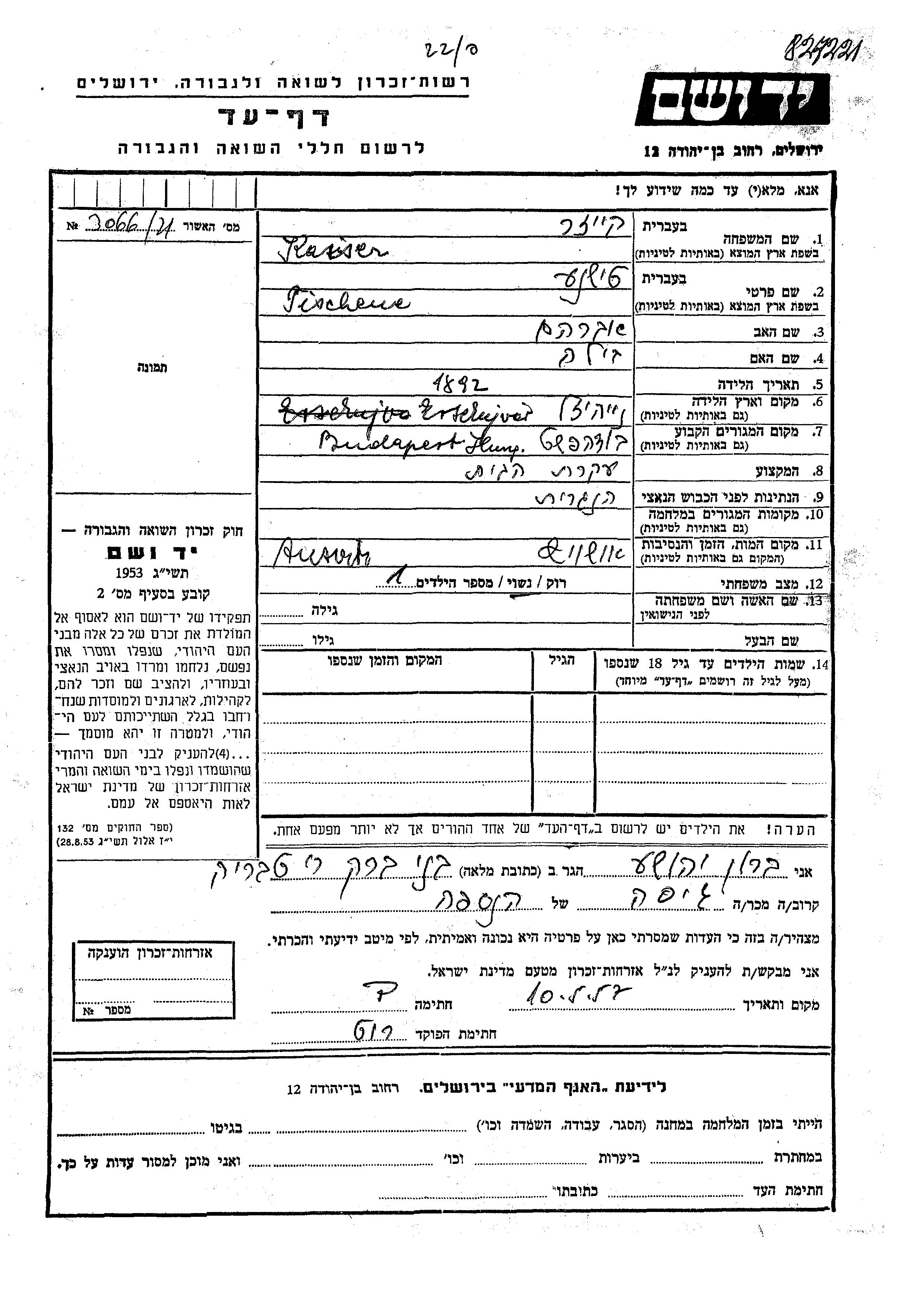 Dusha wurde in der Schoah ermordet. Todesort: Auschwitz, Polen.