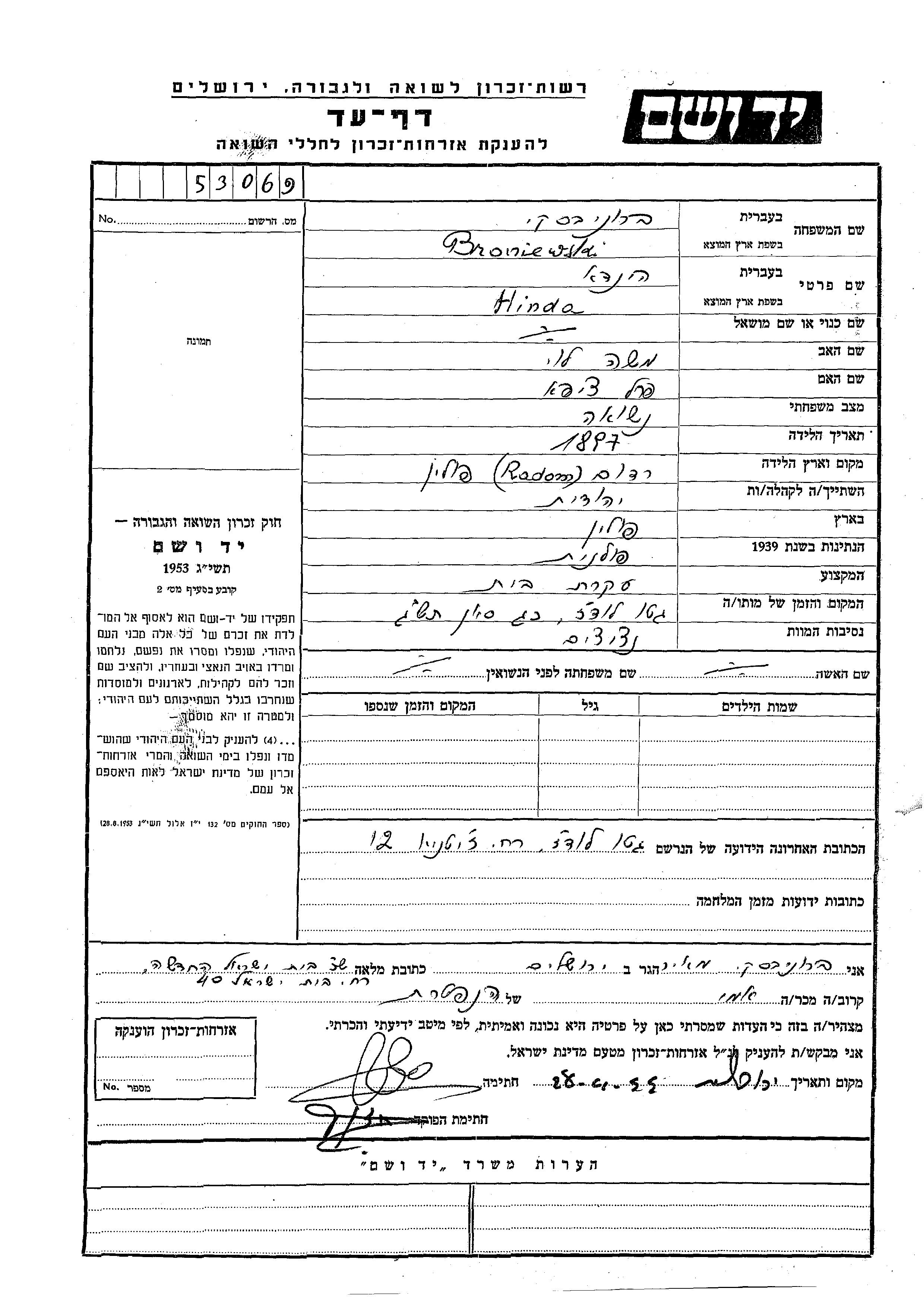 Hinda wurde in der Schoah ermordet. Todesort: Lodz, Polen im Jahr 26/06/1943.