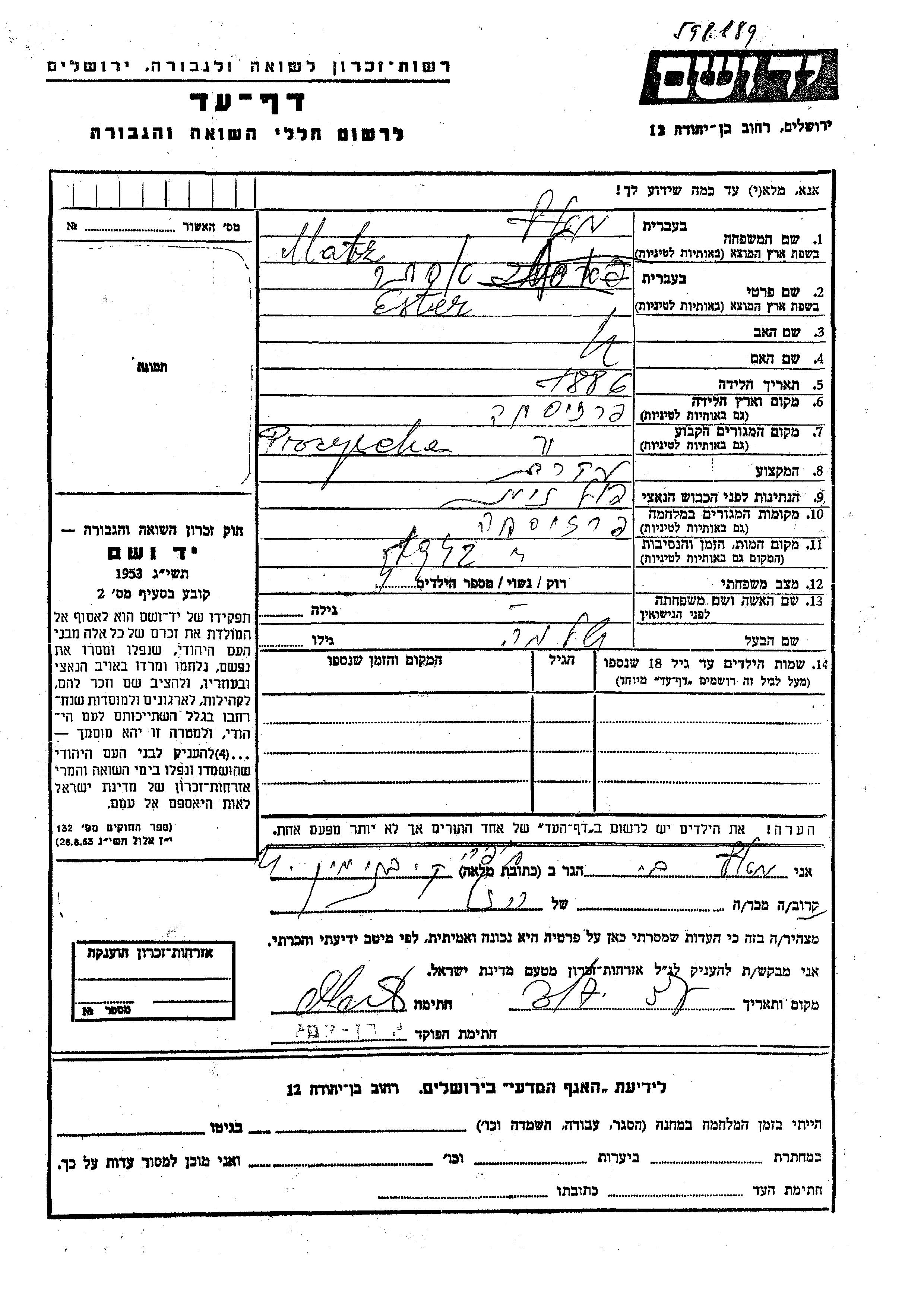 Ester wurde in der Schoah ermordet. Todesort: Przesuhu, Polen im Jahr 1942.