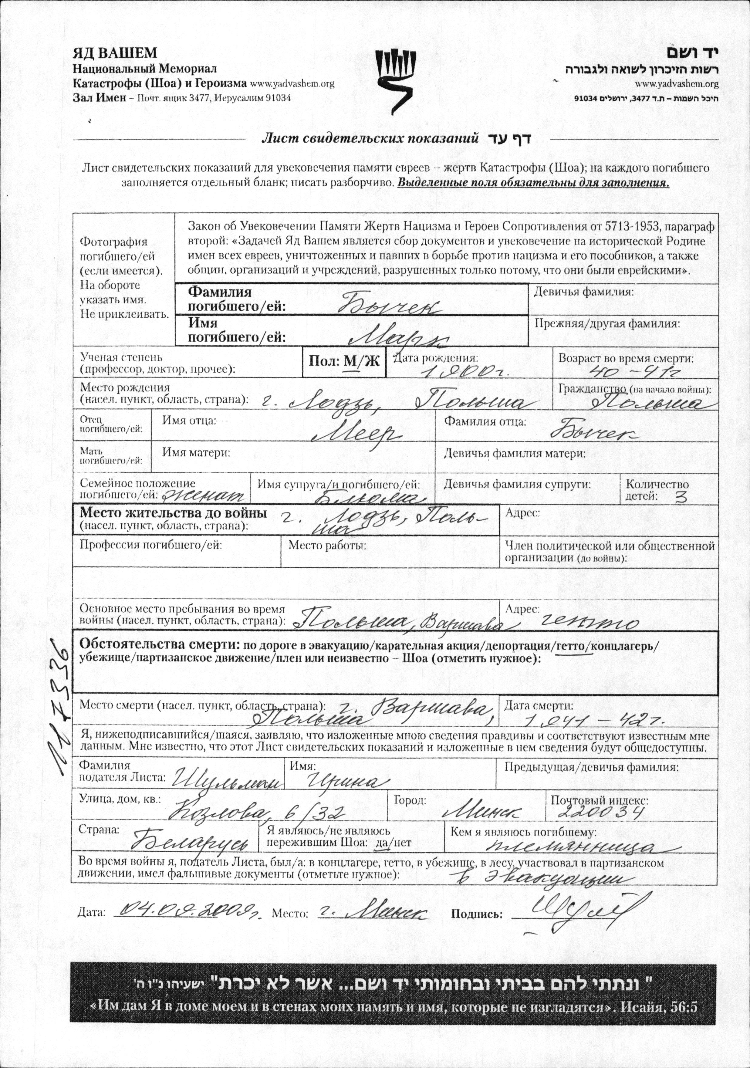Mark wurde in der Schoah ermordet. Todesort: Warszawa, Polen im Jahr 1941.