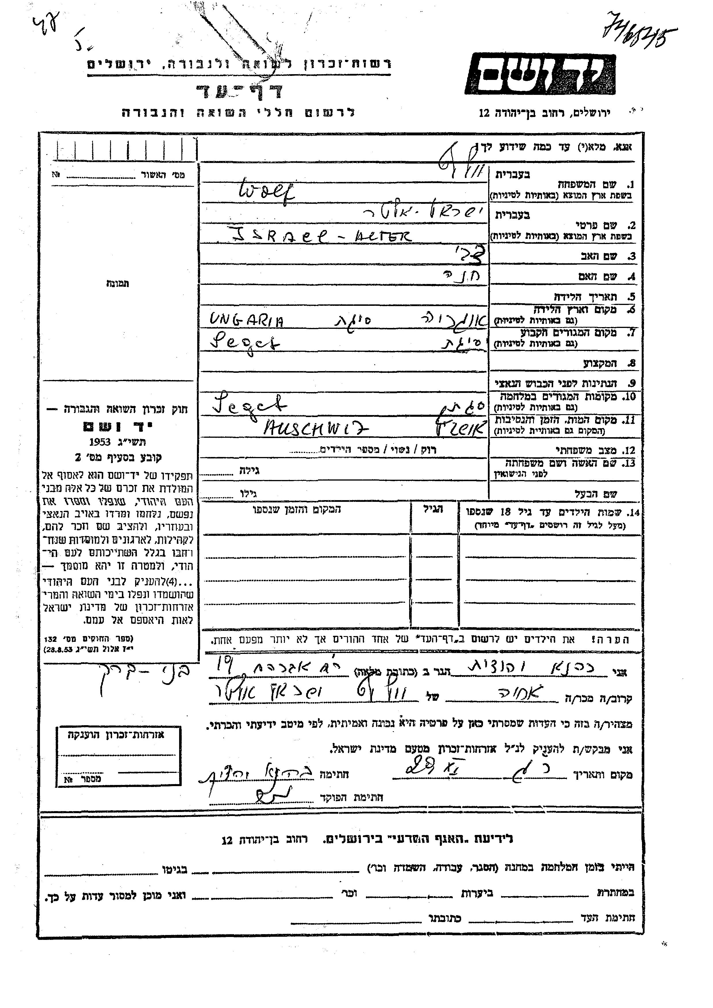 Wolf Israel Alter Sege, Ungarn Gedenkblatt