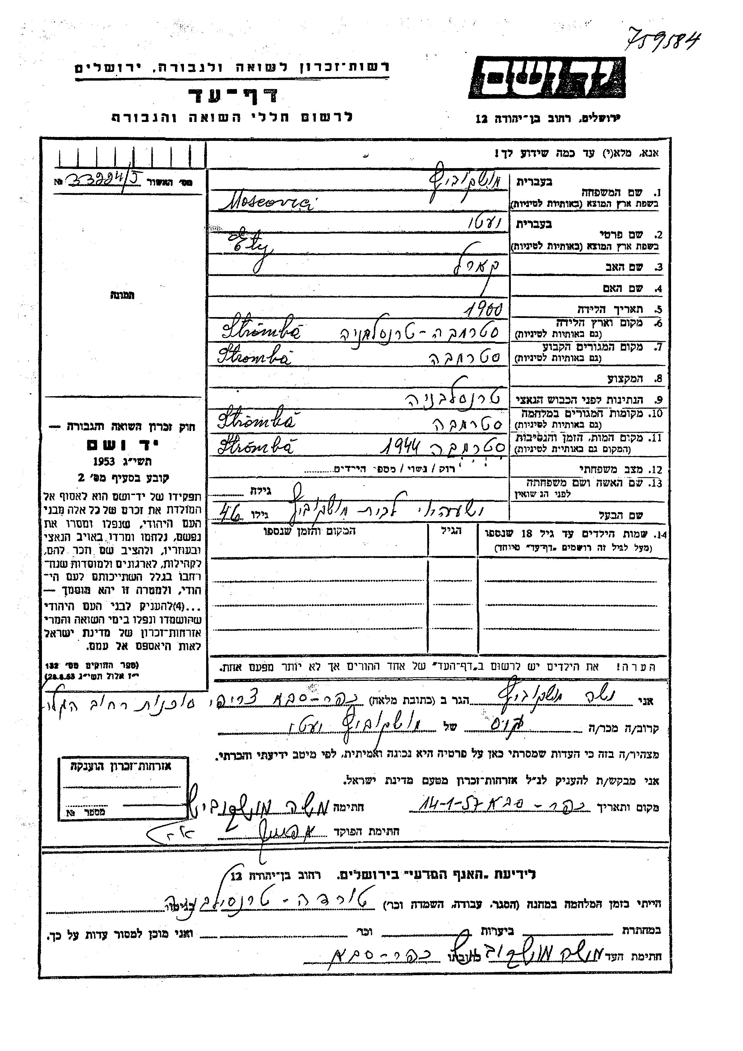 Ety wurde in der Schoah ermordet. Todesort: Stremba, Rumänien im Jahr 1944.