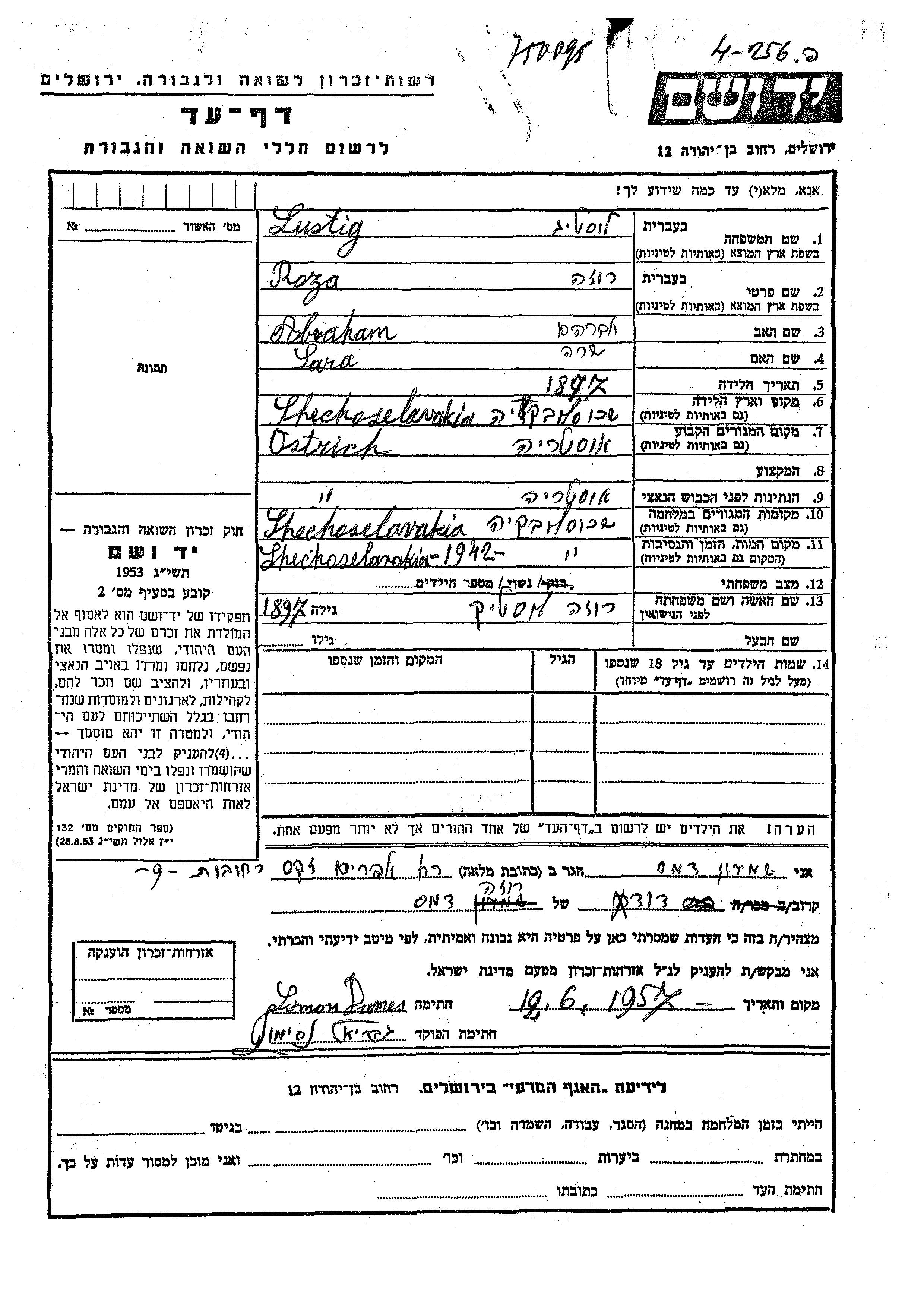 Roza wurde in der Schoah ermordet. Todesort: Tschechoslowakei im Jahr 1942.