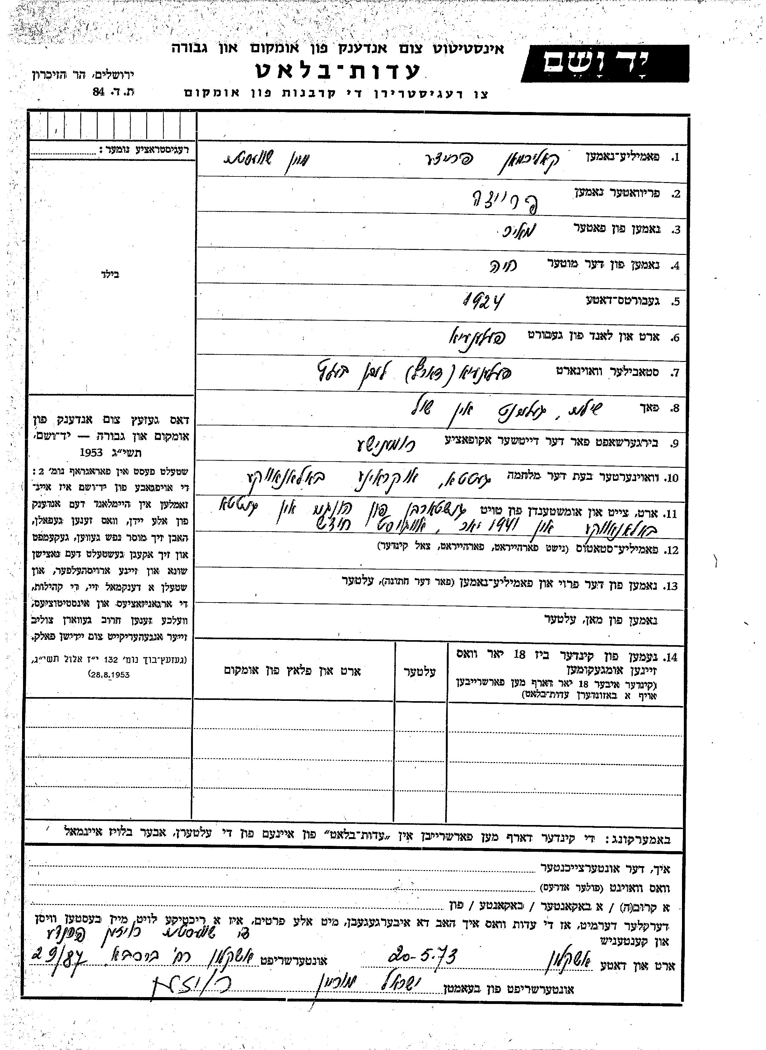 Kalikhman Freida 1924 Luben, Polen Gedenkblatt
