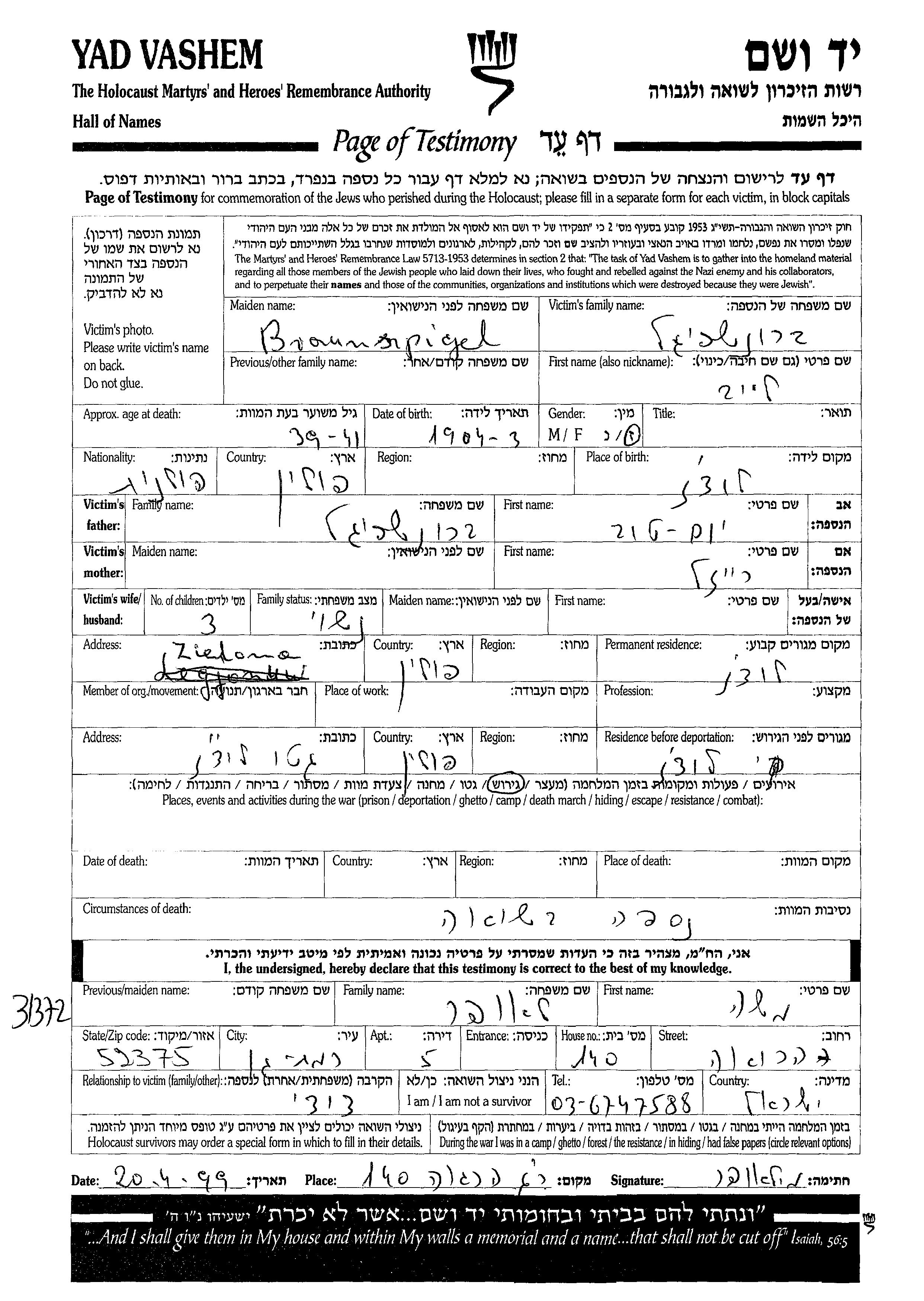 Leib Braunszpigel wurde im Jahr 1903 in Lodz, Polen geboren. Er war der Sohn von Yom Tov und Reizl. Er war Verheiratet. Vor dem Zweiten Weltkrieg lebte er in Lodz, Polen. Während des Krieges war er in Lodz, Polen.