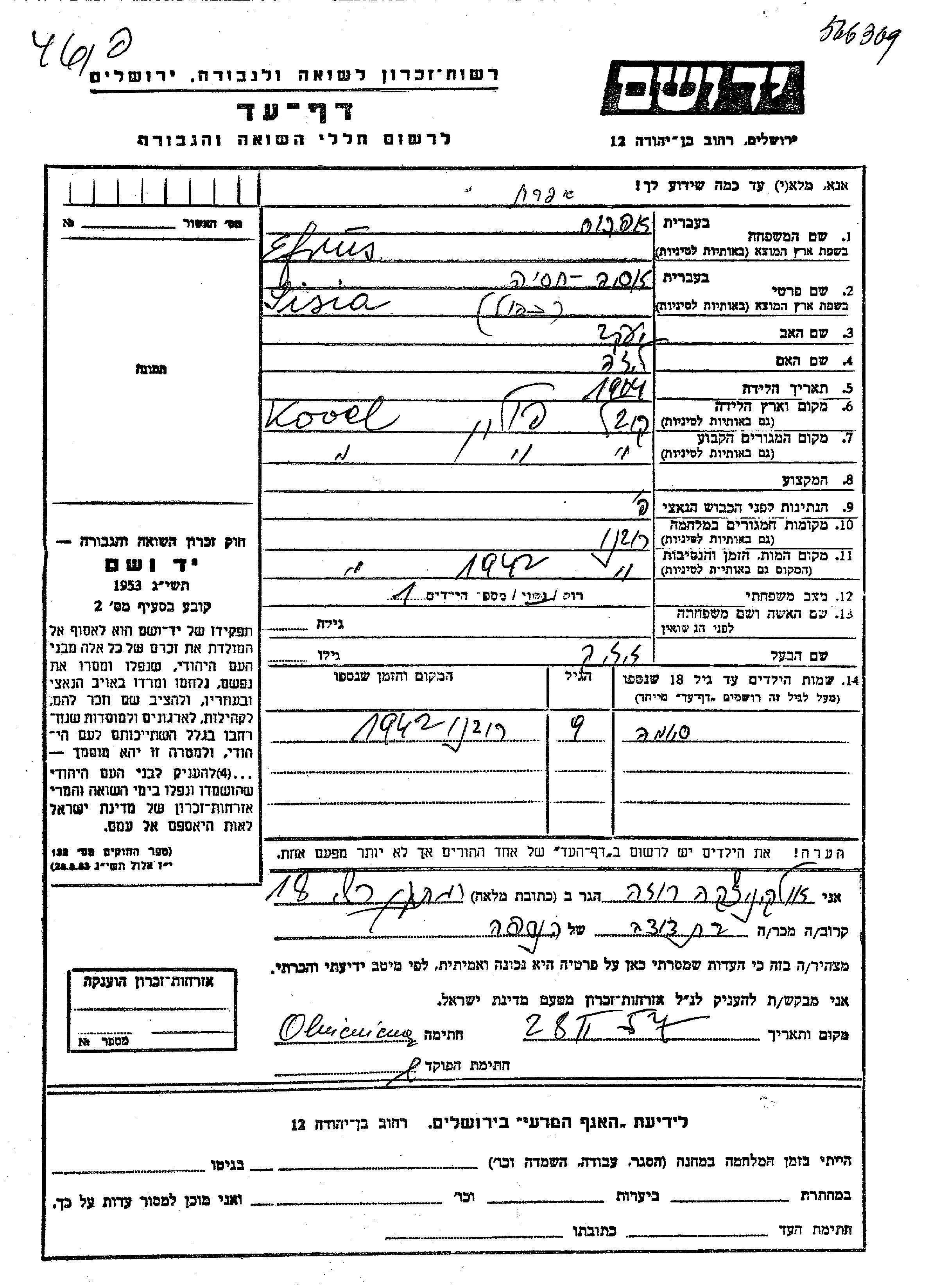 Sisia Zusia Khasia Efros Efrat wurde im Jahr 1904 in Kowel, Polen geboren. Sie war die Tochter von Yaakov und Liza. Sie war mit Lolek Verheiratet. Vor dem Zweiten Weltkrieg lebte sie in Kowel, Polen. Während des Krieges war sie in Rowna, Polen.