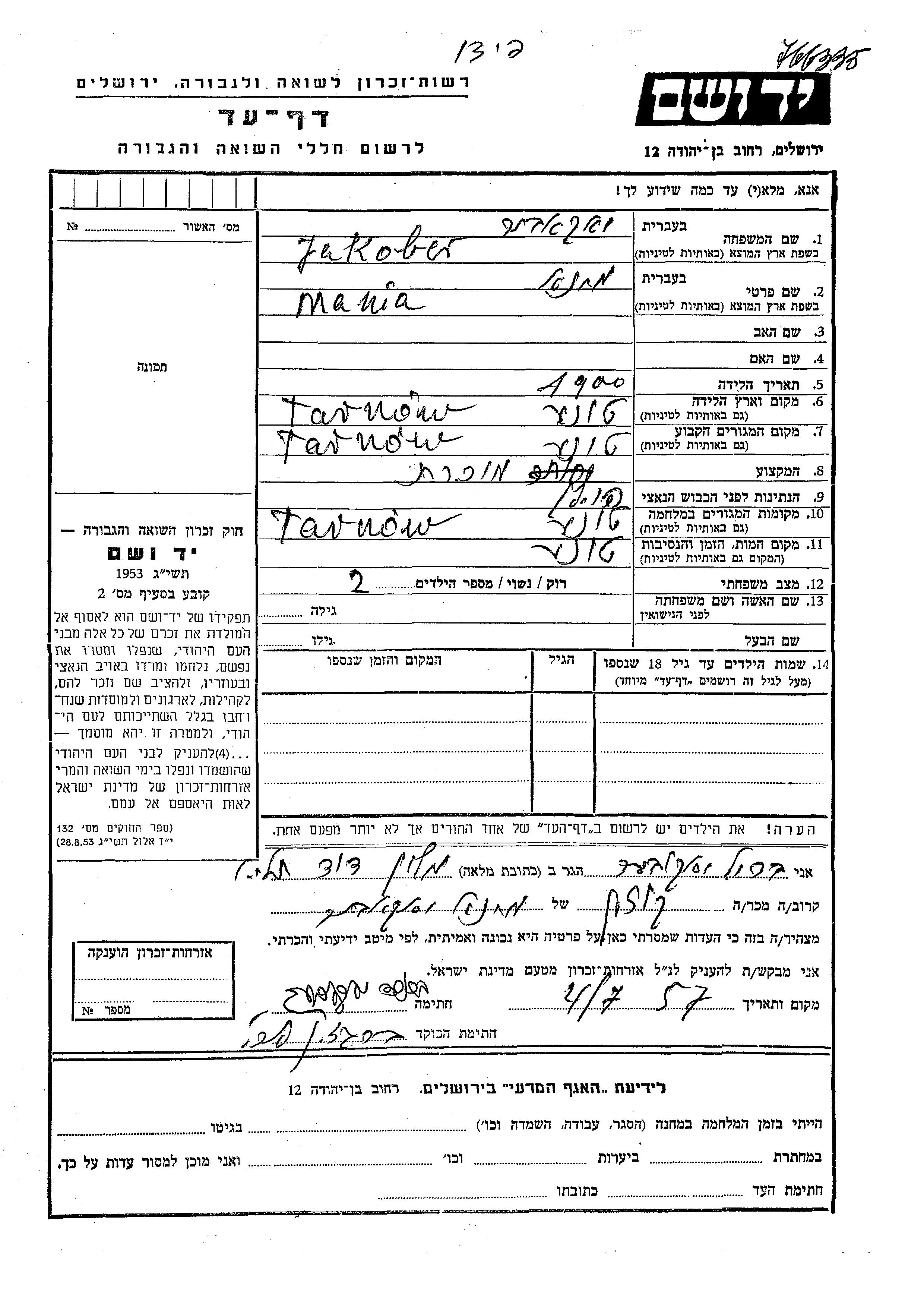 Mina Mania Jakober wurde im Jahr 1900 in Tarnow, Polen geboren. Sie war Handelsvertreterin und Verheiratet. Vor dem Zweiten Weltkrieg lebte sie in Tarnow, Polen. Während des Krieges war sie in Tarnow, Polen.