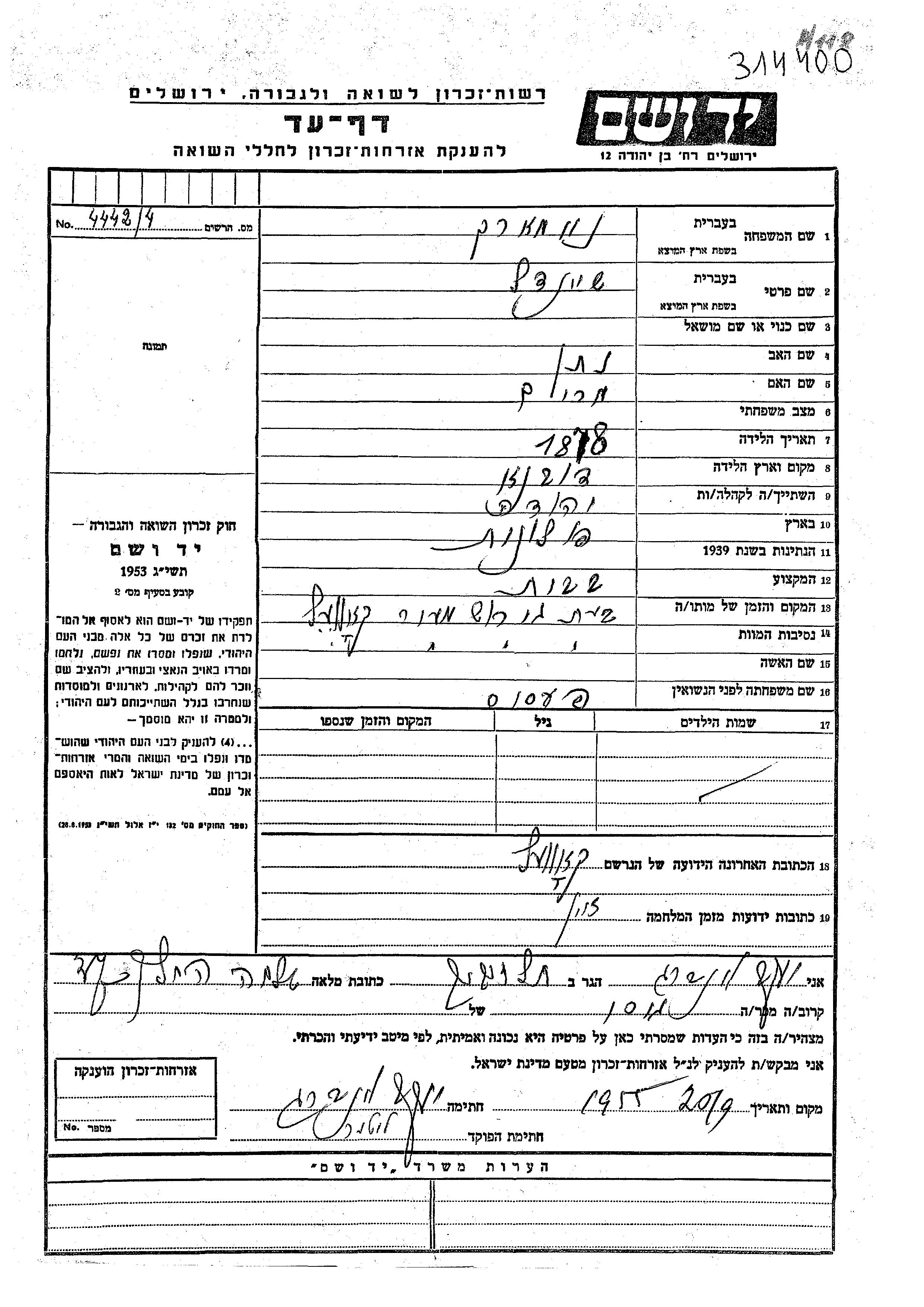 Yad Vashem - Gedenkblätter Sammlung