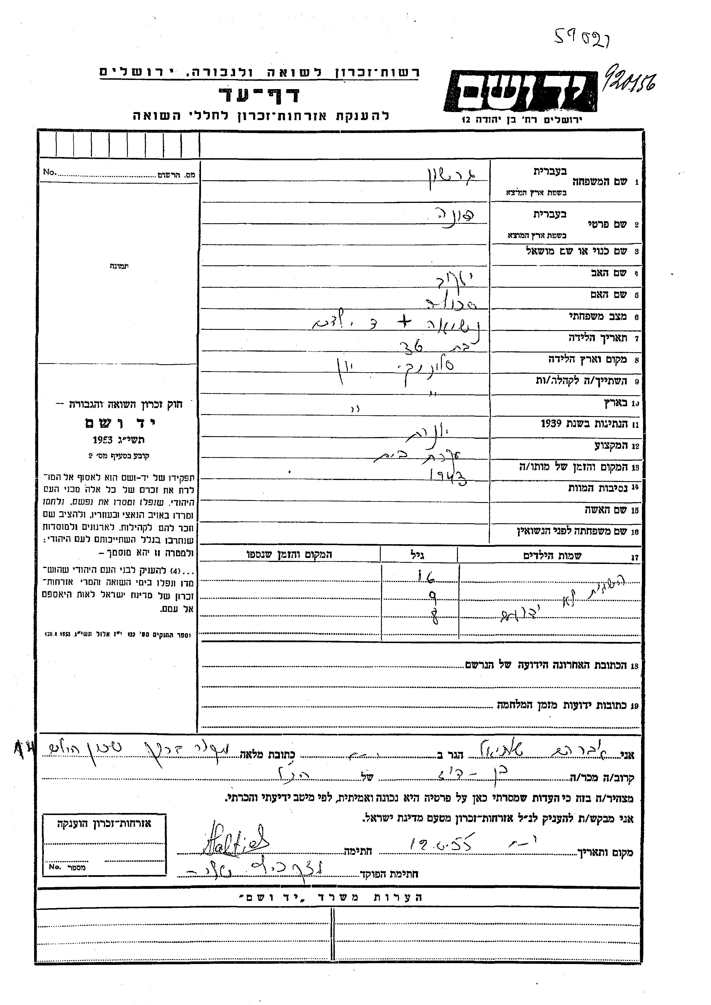 Dona wurde in der Schoah ermordet. Todesort: unbekannt im Jahr 1943.