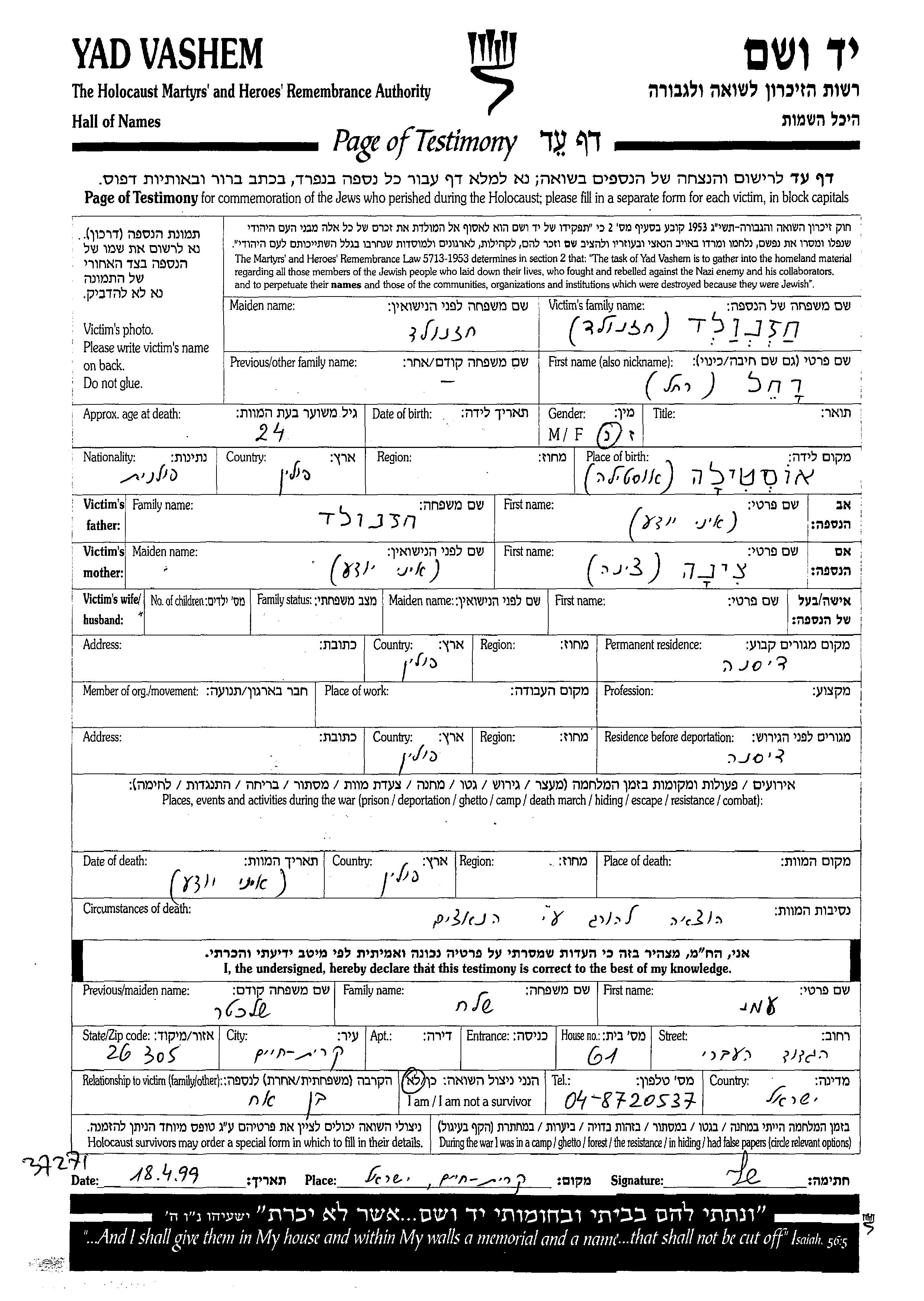 Khazenvald Rakhel Dzisna, Polen Gedenkblatt