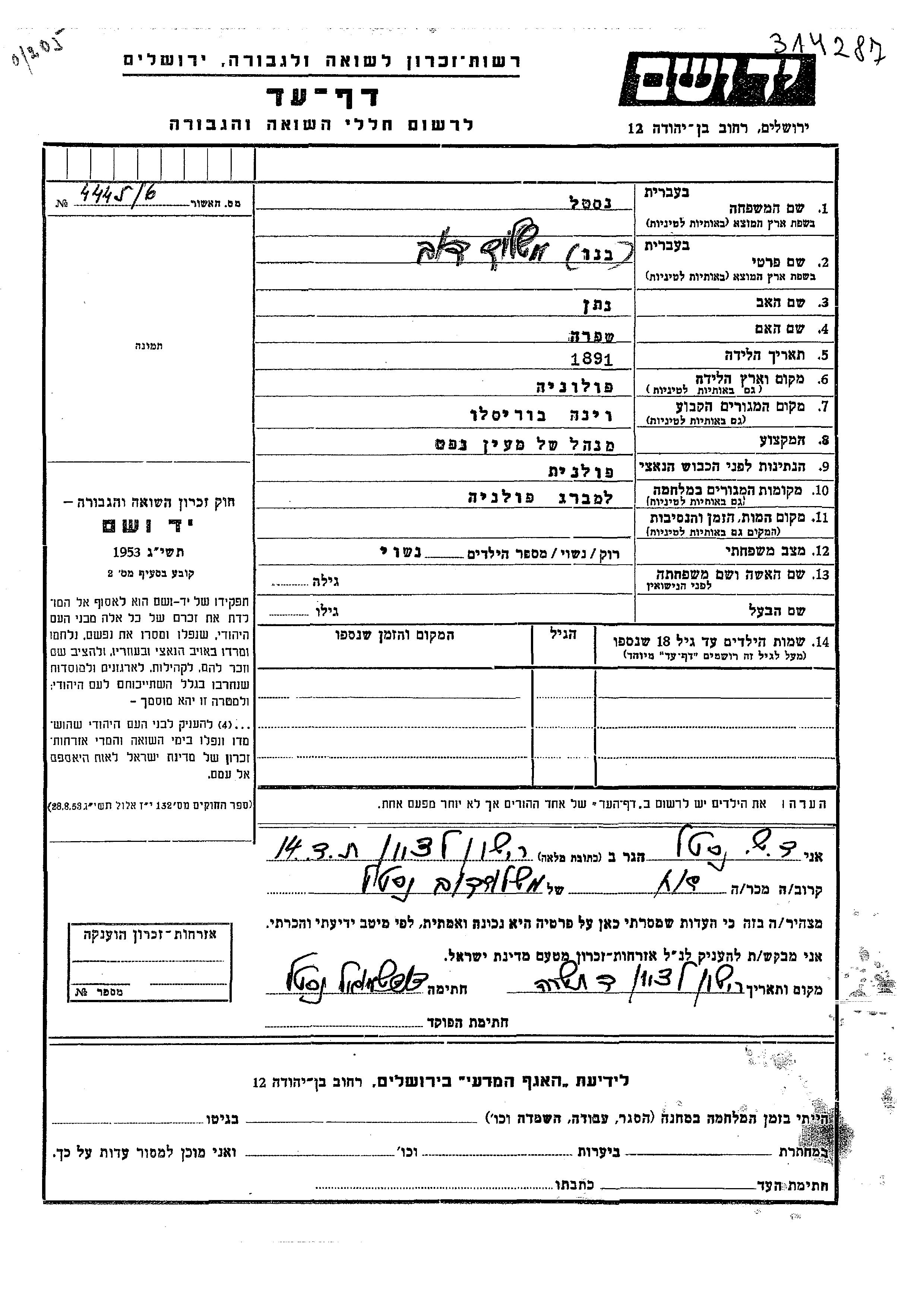 Nestl Meshulam Dov 1891 Boryslaw, Polen Gedenkblatt