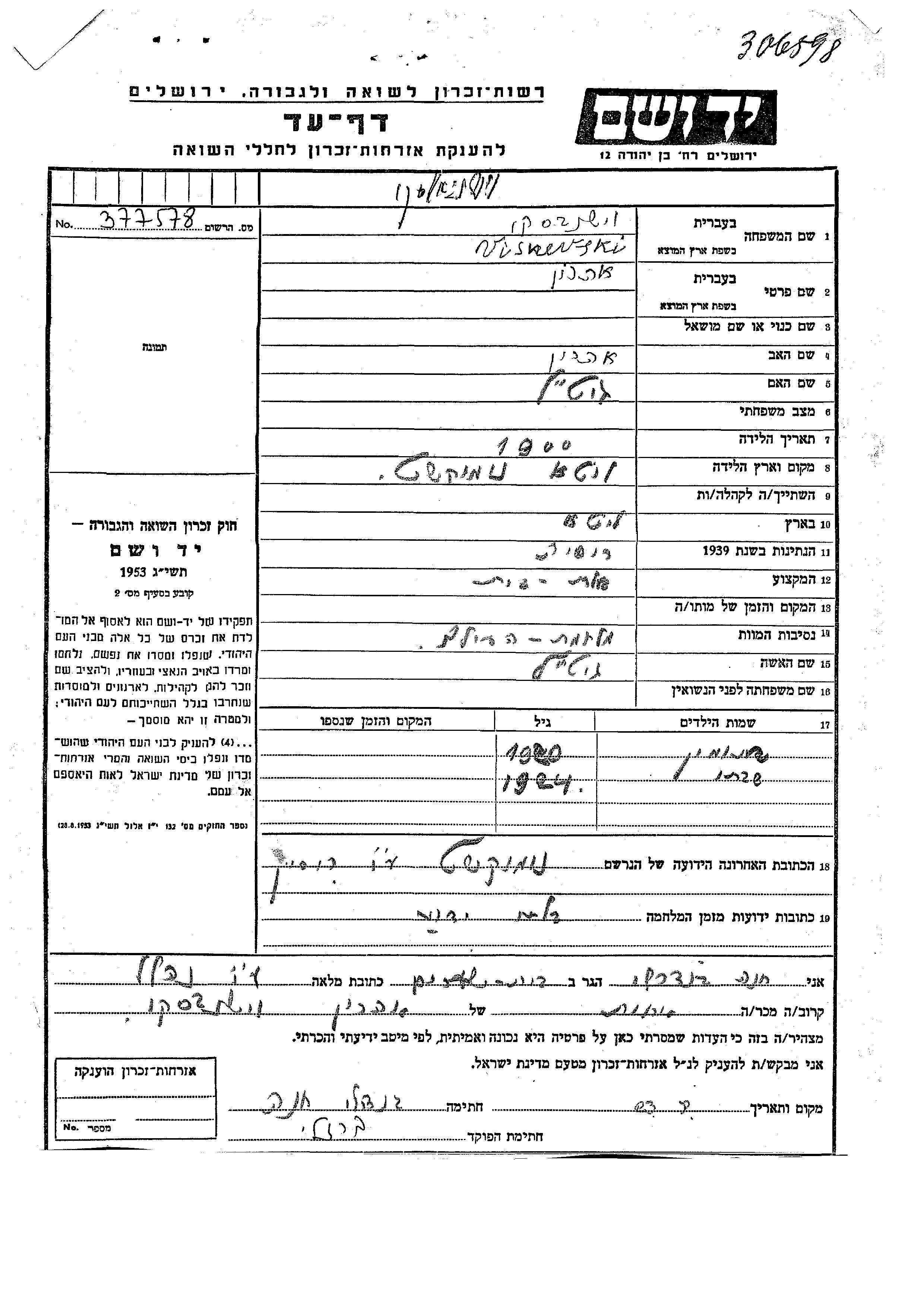 Suche nach einem Todesjahr im Zeitraum der Holocaust: 1933 bis 1945. Bitte wählen Sie 'Exakt' im Auswahlmenü, um nur nach einem einzelnen Jahr zu suchen, alternativ können Sie die flexibleren Optionen '+/- 2 Jahre' oder '+/- 5 Jahre' wählen.