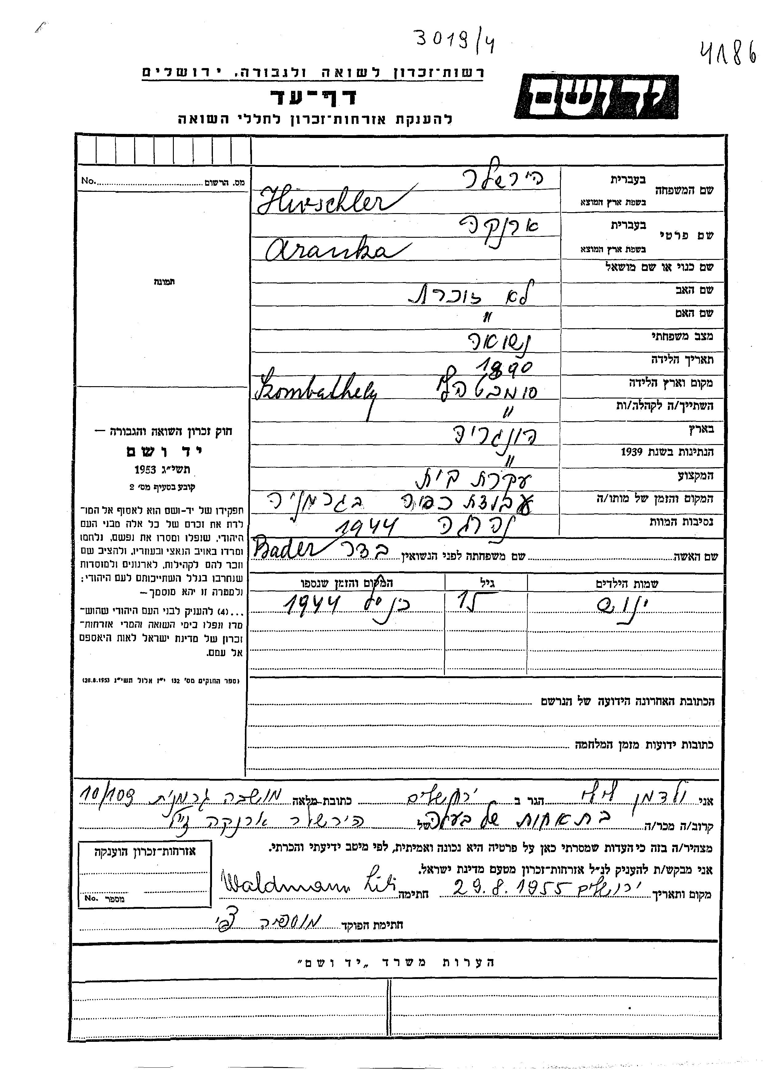 Aranka Hirschler, geb. Bader wurde im Jahr 1890 in Szombathely, Ungarn geboren. Sie war Hausfrau und Verheiratet. Vor dem Zweiten Weltkrieg lebte sie in Szombathely, Ungarn.