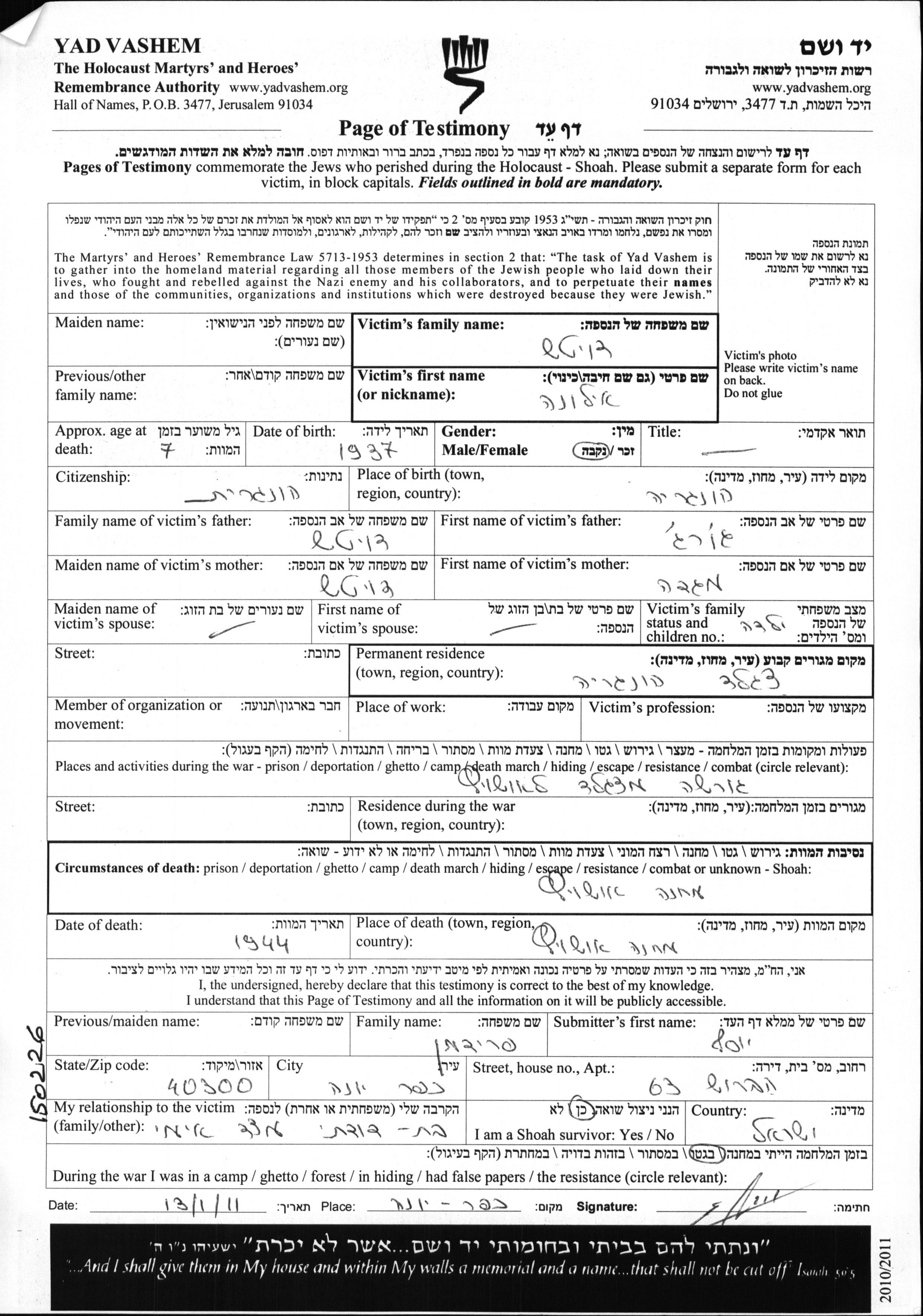 Ilona wurde in der Schoah ermordet. Todesort: Auschwitz, Polen im Jahr 1944.