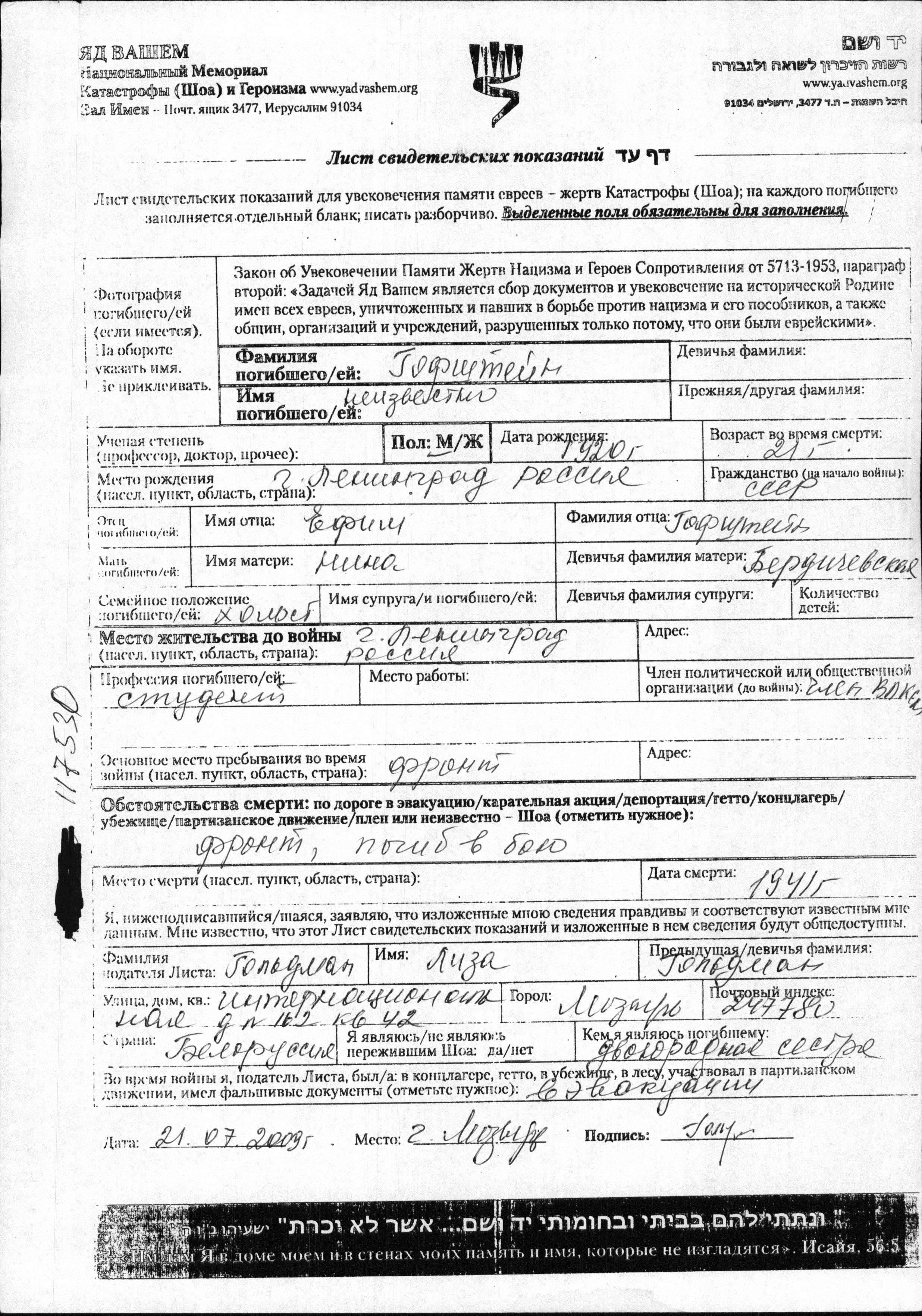Er im Militärdienst umgekommen. Todesort: unbekannt im Jahr 1941.