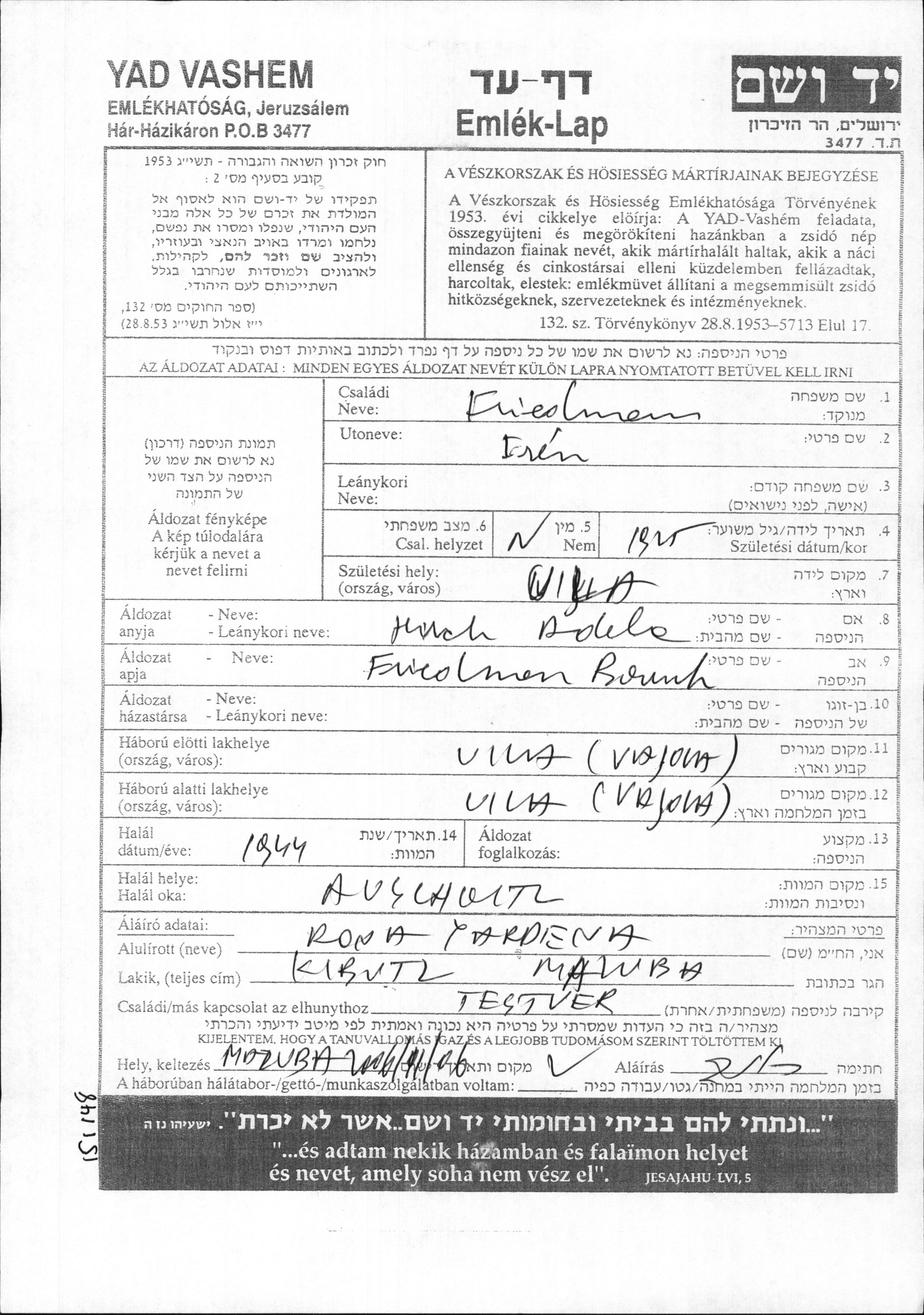 Iren wurde in der Schoah ermordet. Todesort: Auschwitz, Polen im Jahr 1944.