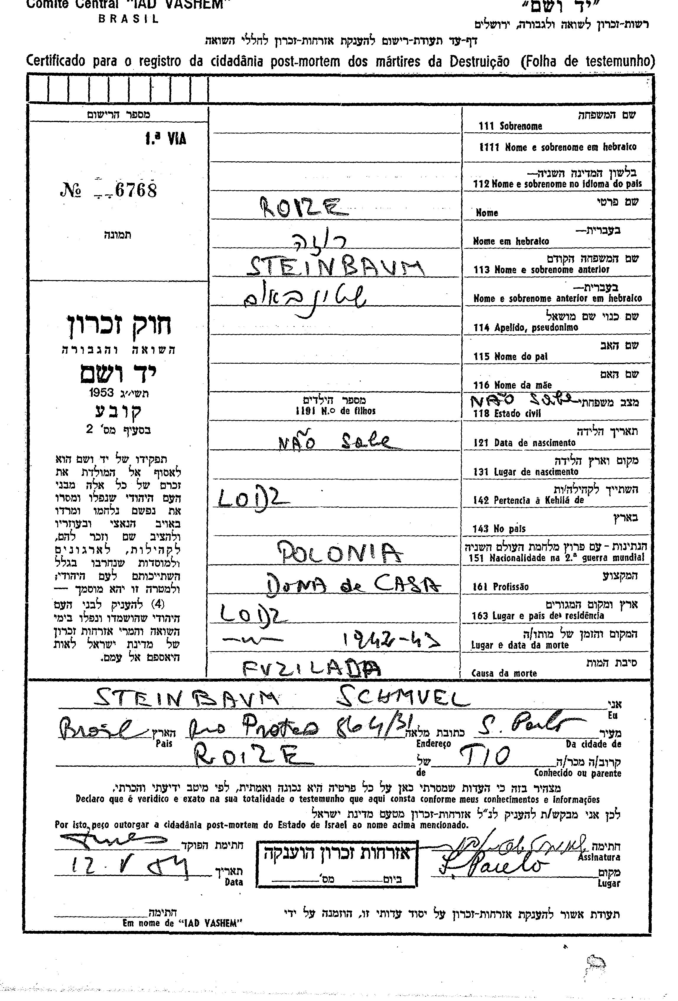 Roize Steinbaum. Sie war Hausfrau. Vor dem Zweiten Weltkrieg lebte sie in Lodz, Polen. Während des Krieges war sie in Lodz, Polen.