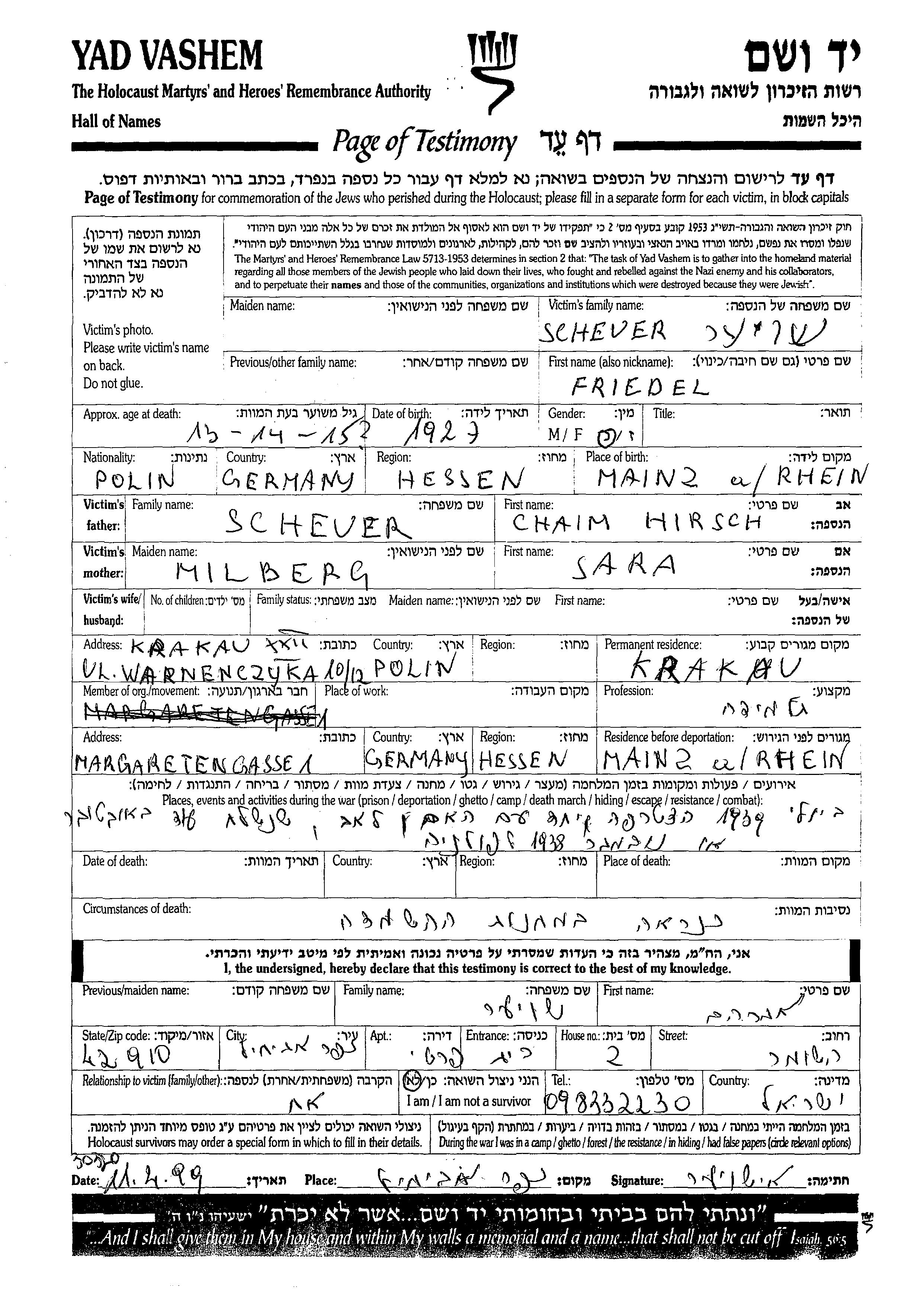 Friedel wurde in der Schoah ermordet.