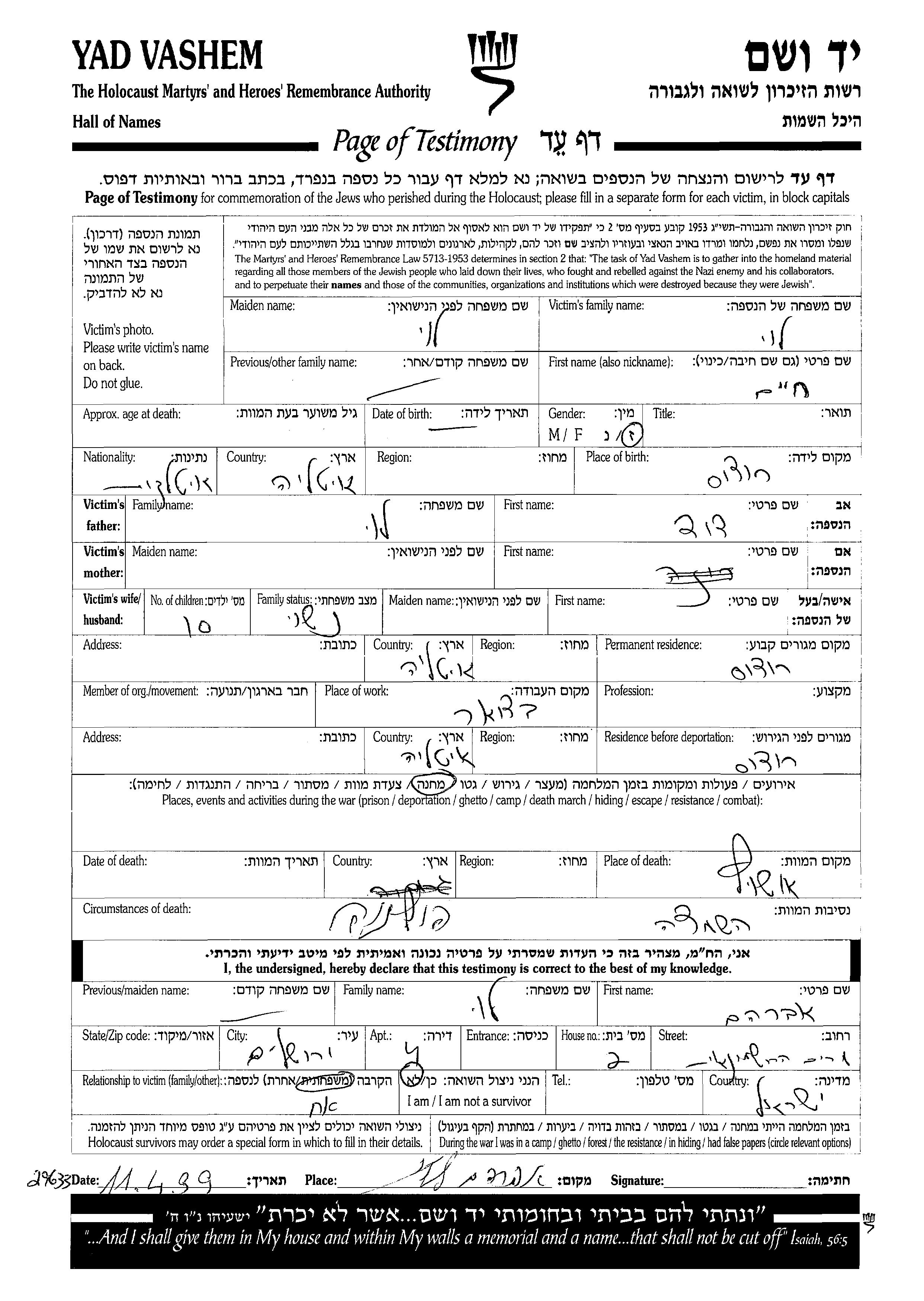 Khaim wurde in der Schoah ermordet. Todesort: Auschwitz, Polen.