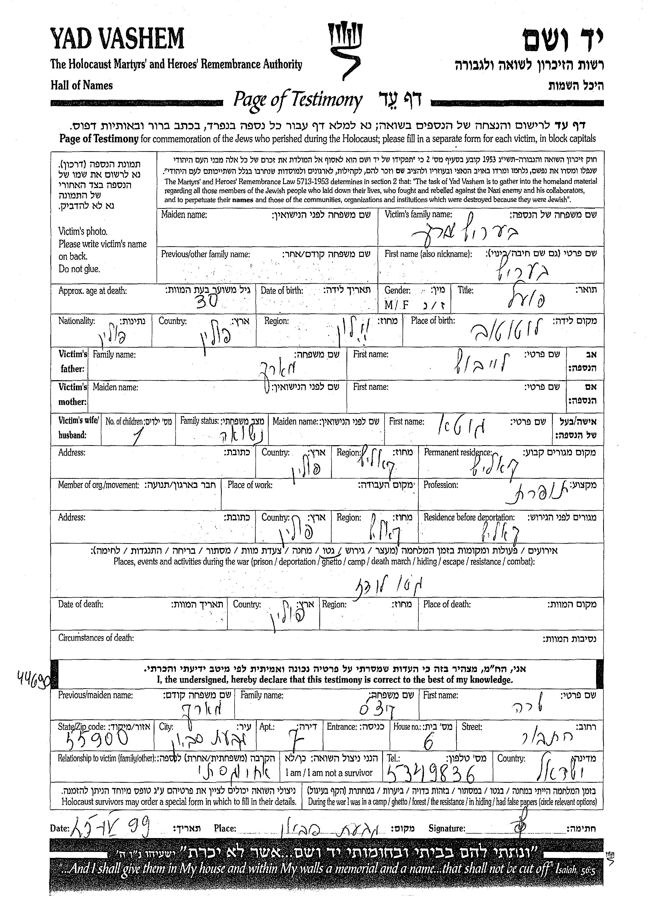 Beril Mark wurde in Lutotow, Polen geboren. Er war der Sohn von Leibush. Er war Arbeiter/-in und mit Guta Verheiratet. Vor dem Zweiten Weltkrieg lebte er in Kalish, Polen. Während des Krieges war er in Kalish, Polen.