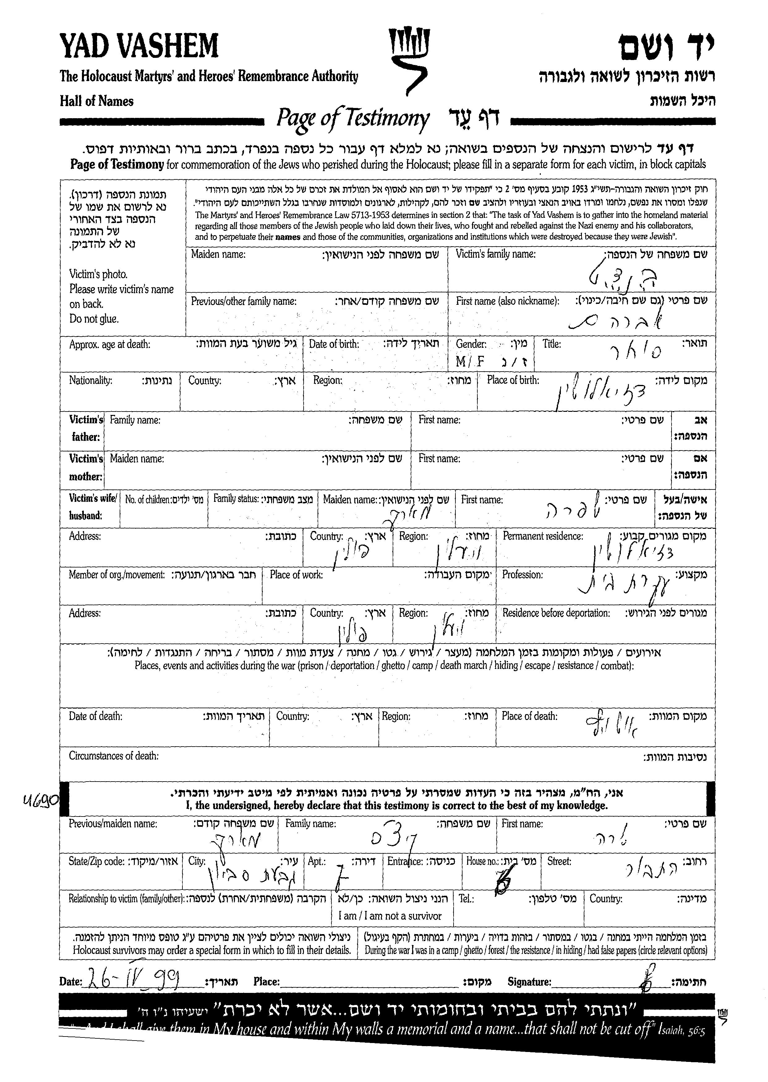 Avraham wurde in der Schoah ermordet. Todesort: Auschwitz, Polen.