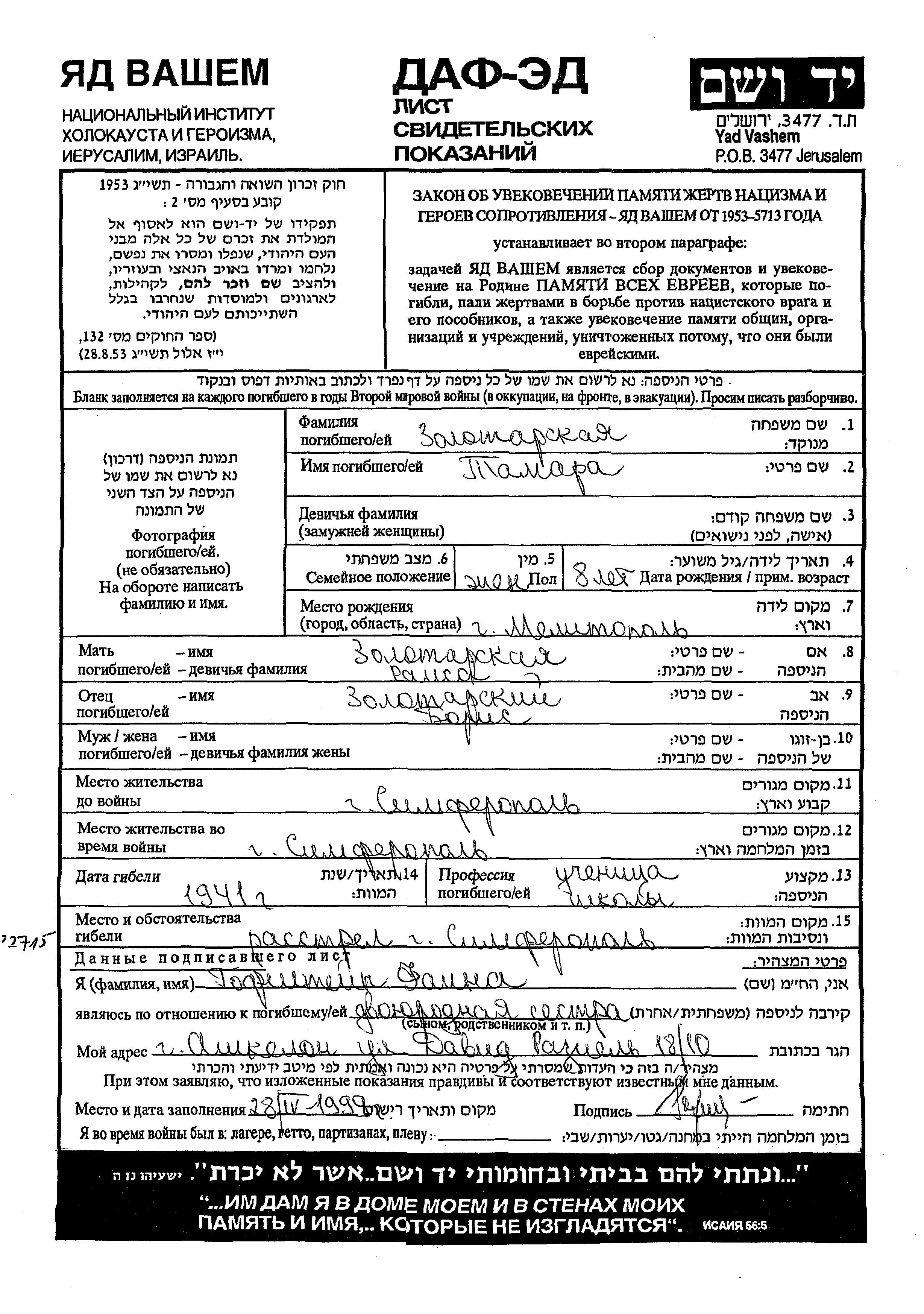 Tamara wurde in der Schoah ermordet. Todesort: Simferopol, Russland (UdSSR) im Jahr 1941.