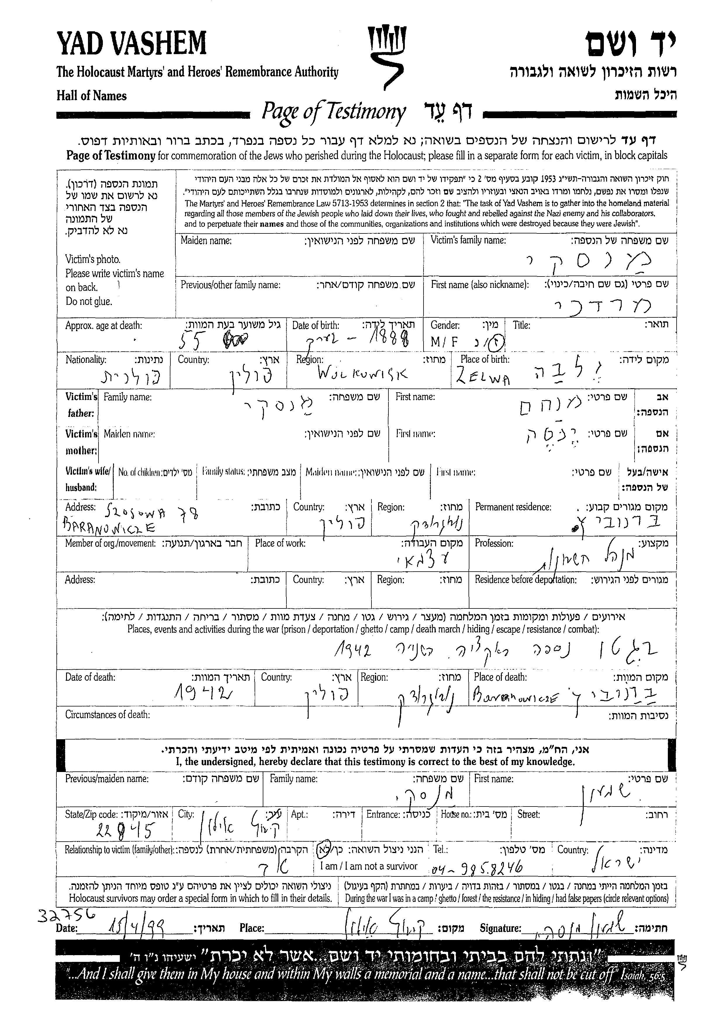 Mordekhai wurde in der Schoah ermordet. Todesort: Baranowicz, Polen im Jahr 1942.