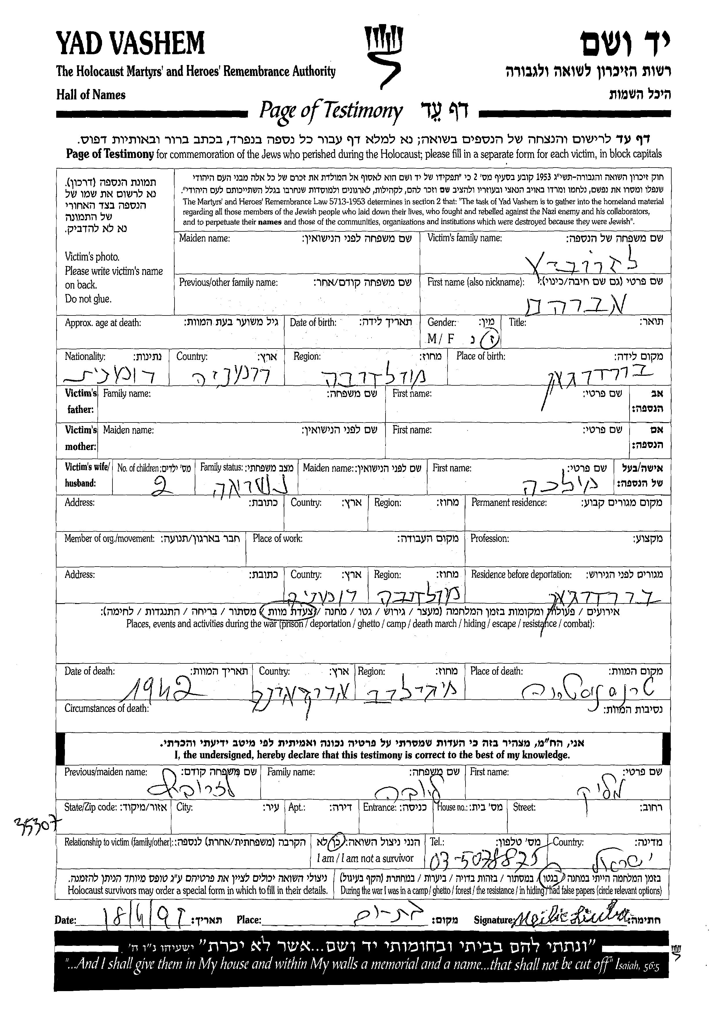 Avraham wurde in der Schoah ermordet. Todesort: Mogilev Podolski, Ukraine (UdSSR) im Jahr 1942.