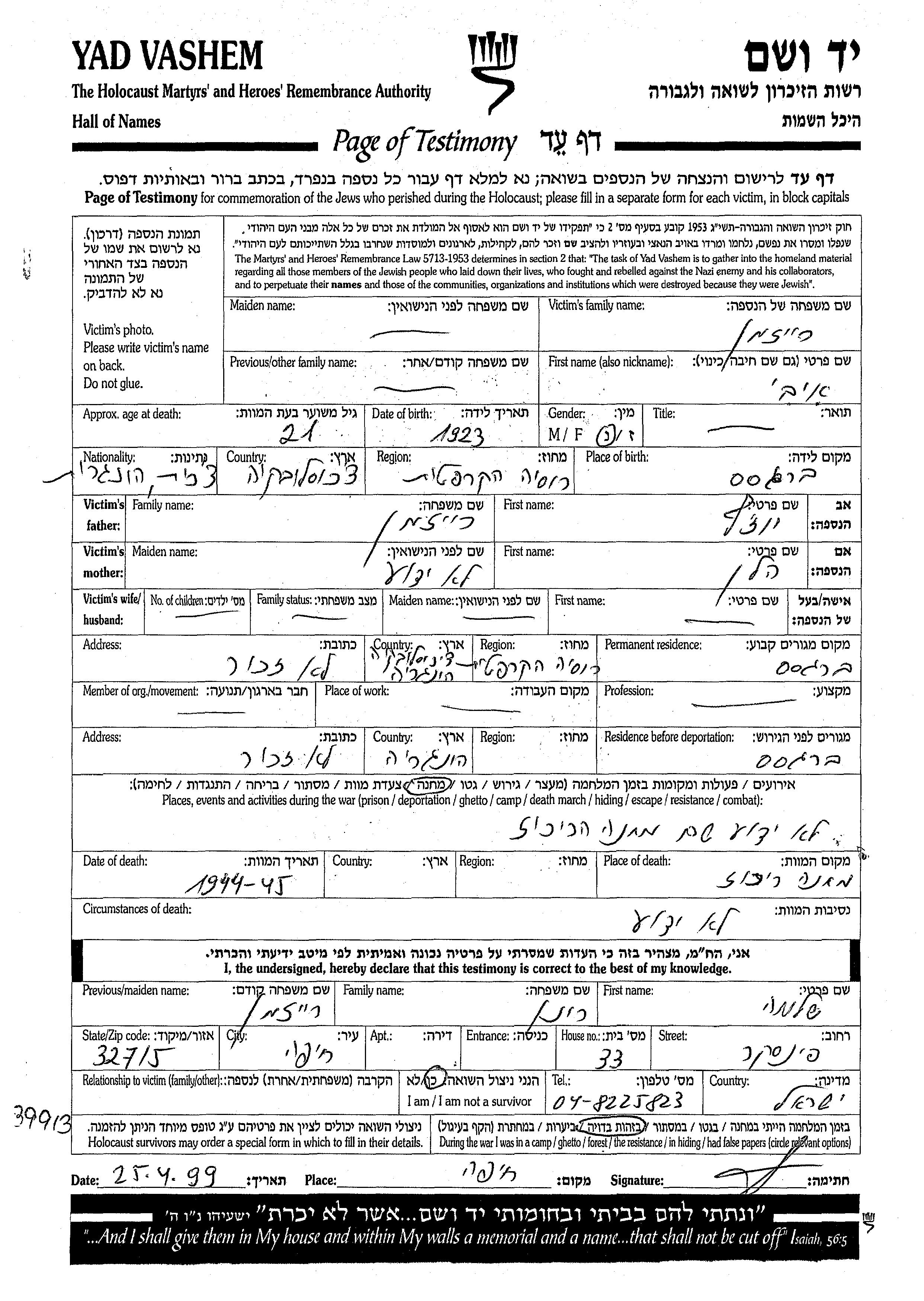 Ibi wurde in der Schoah ermordet. Todesort: unbekannt im Jahr 1944.