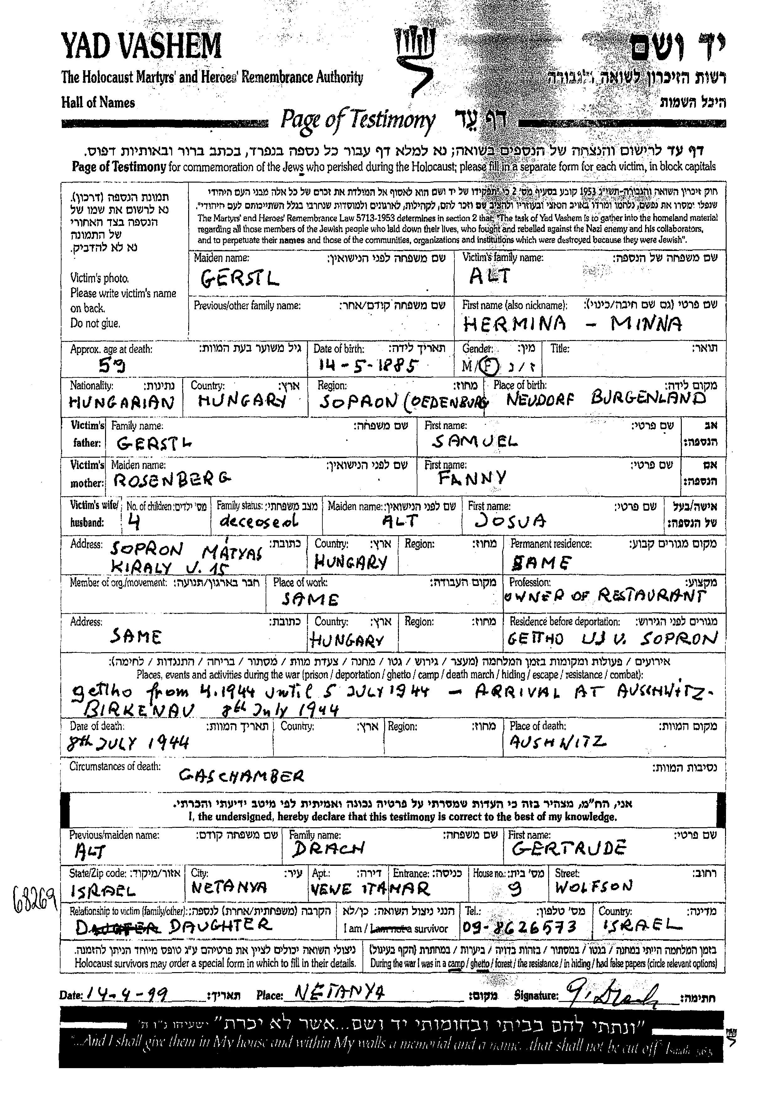 Alt Hermina 1885 Sopron, Ungarn Verfolgtenliste