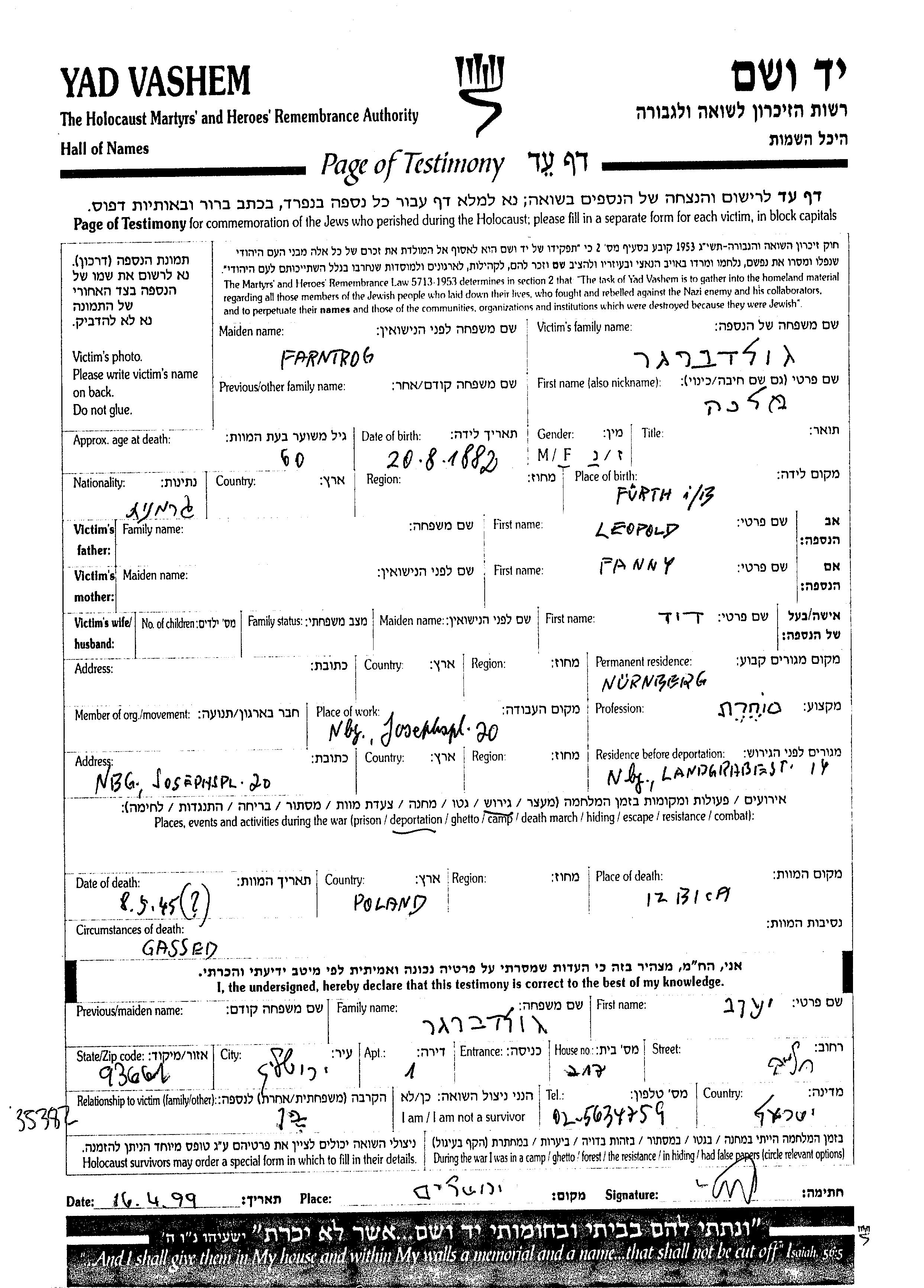 Goldberger | Malka | 1882 | Nurnberg, Deutsches Reich | Gedenkblatt |