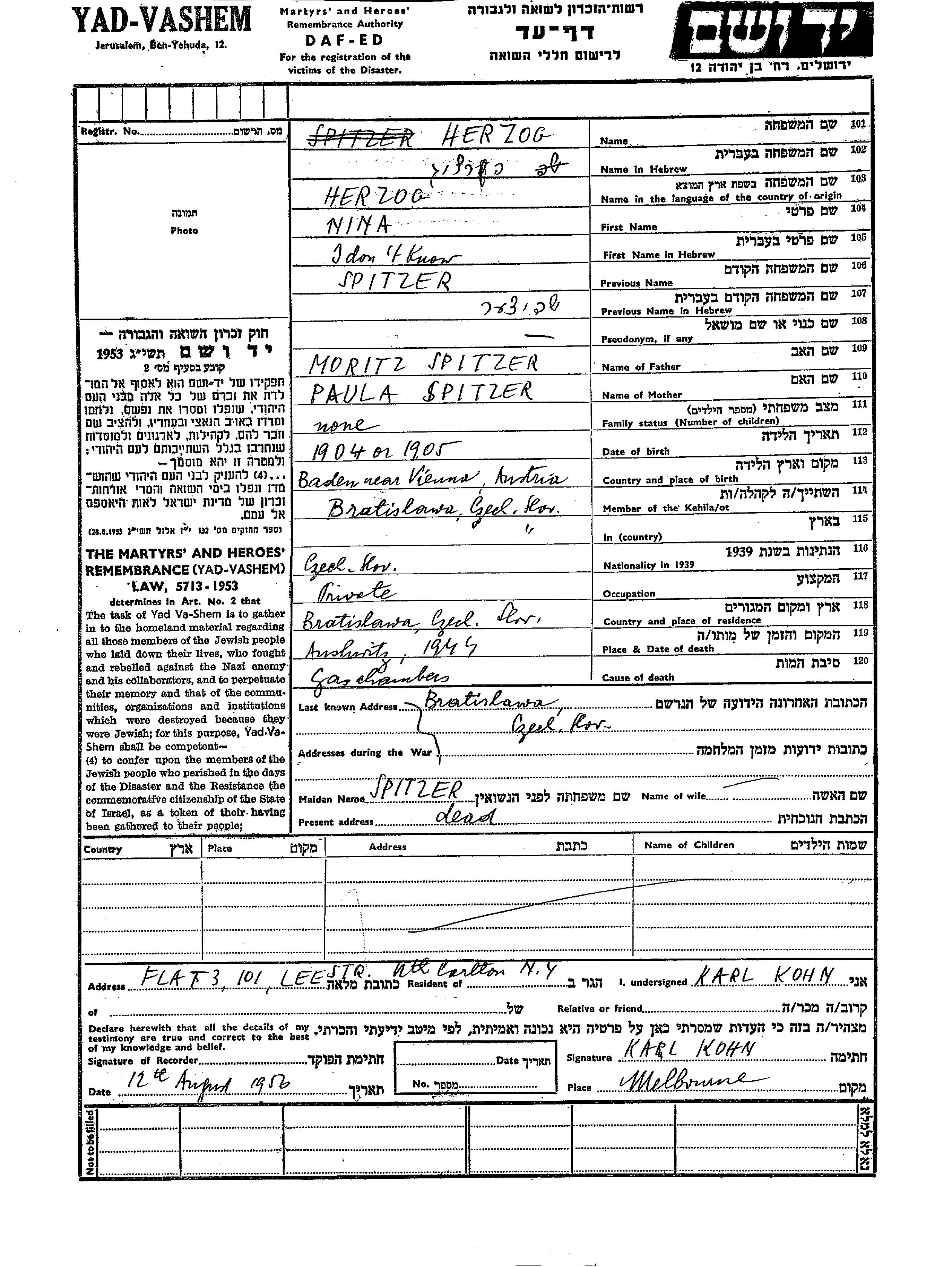 Anna Nina Herzog, geb. Spitzer wurde im Jahr 1903 geboren. Vor dem Zweiten Weltkrieg lebte sie in Bratislava, Tschechoslowakei.