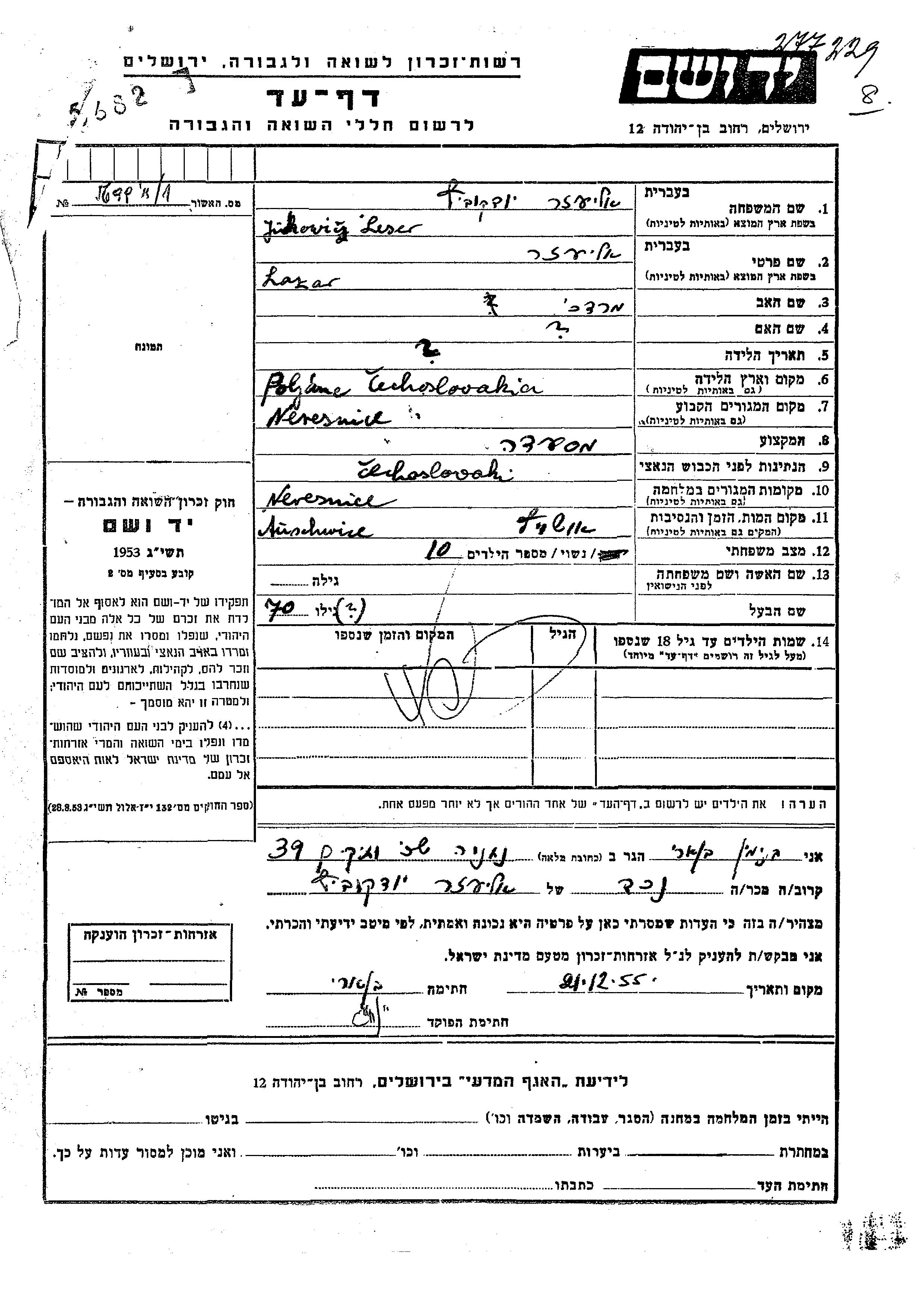 Judkowicz | Lazar | Neresnice, Tschechoslowakei | Gedenkblatt | |