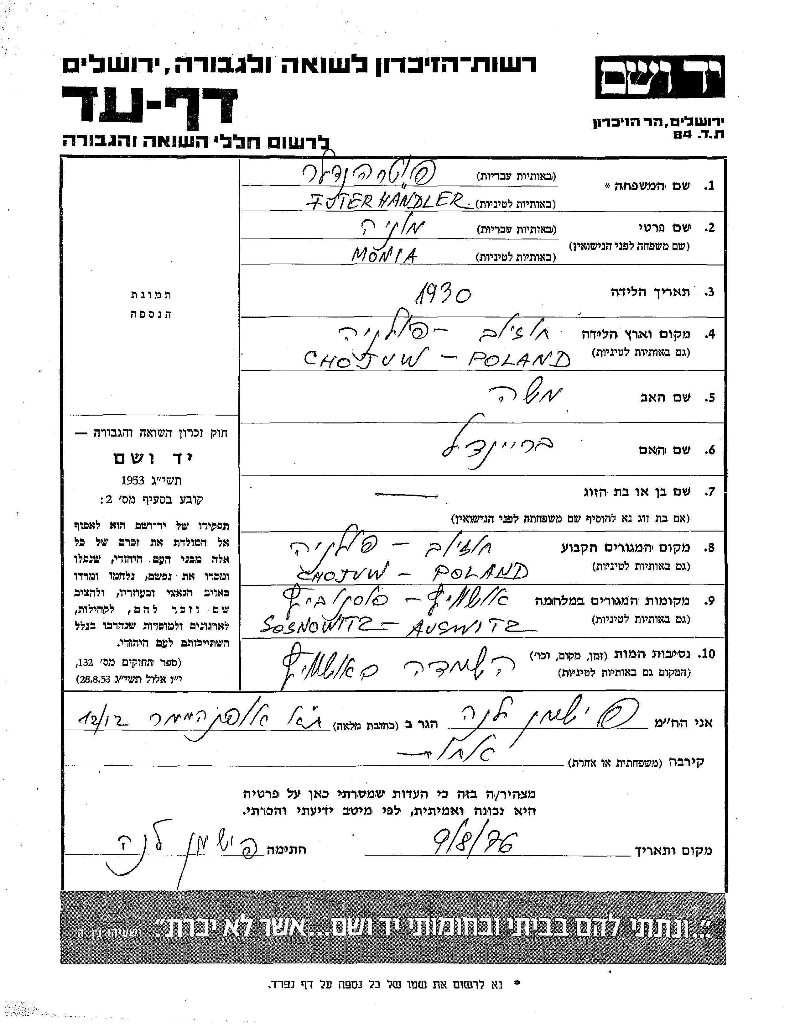 Monia Mendel Futterhaendler wurde im Jahr 1930 in Chorzow, Polen geboren. Vor dem Zweiten Weltkrieg lebte er in Chorzow, Polen.