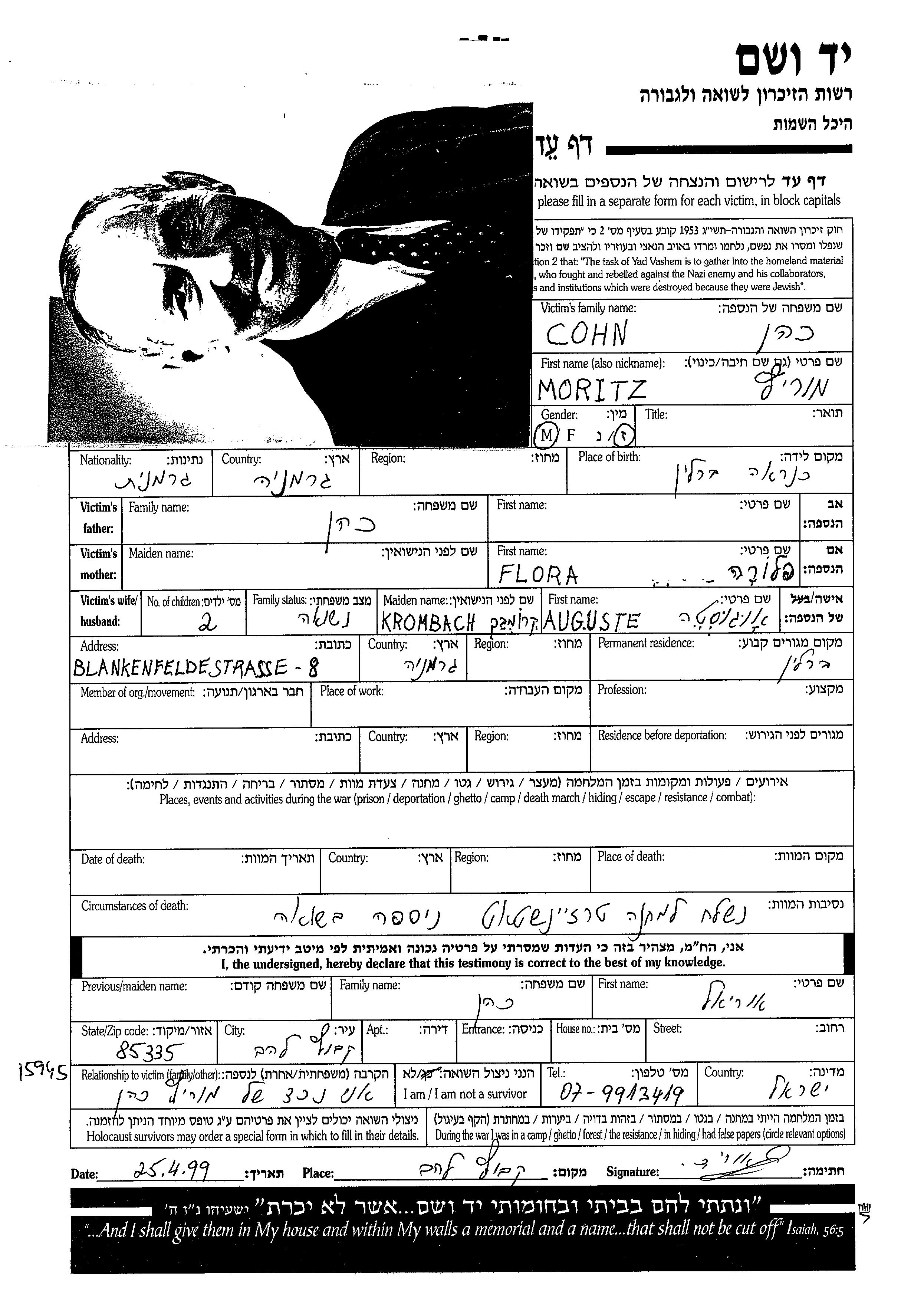 Cohn | Moritz | Berlin, Deutsches Reich | Gedenkblatt | |