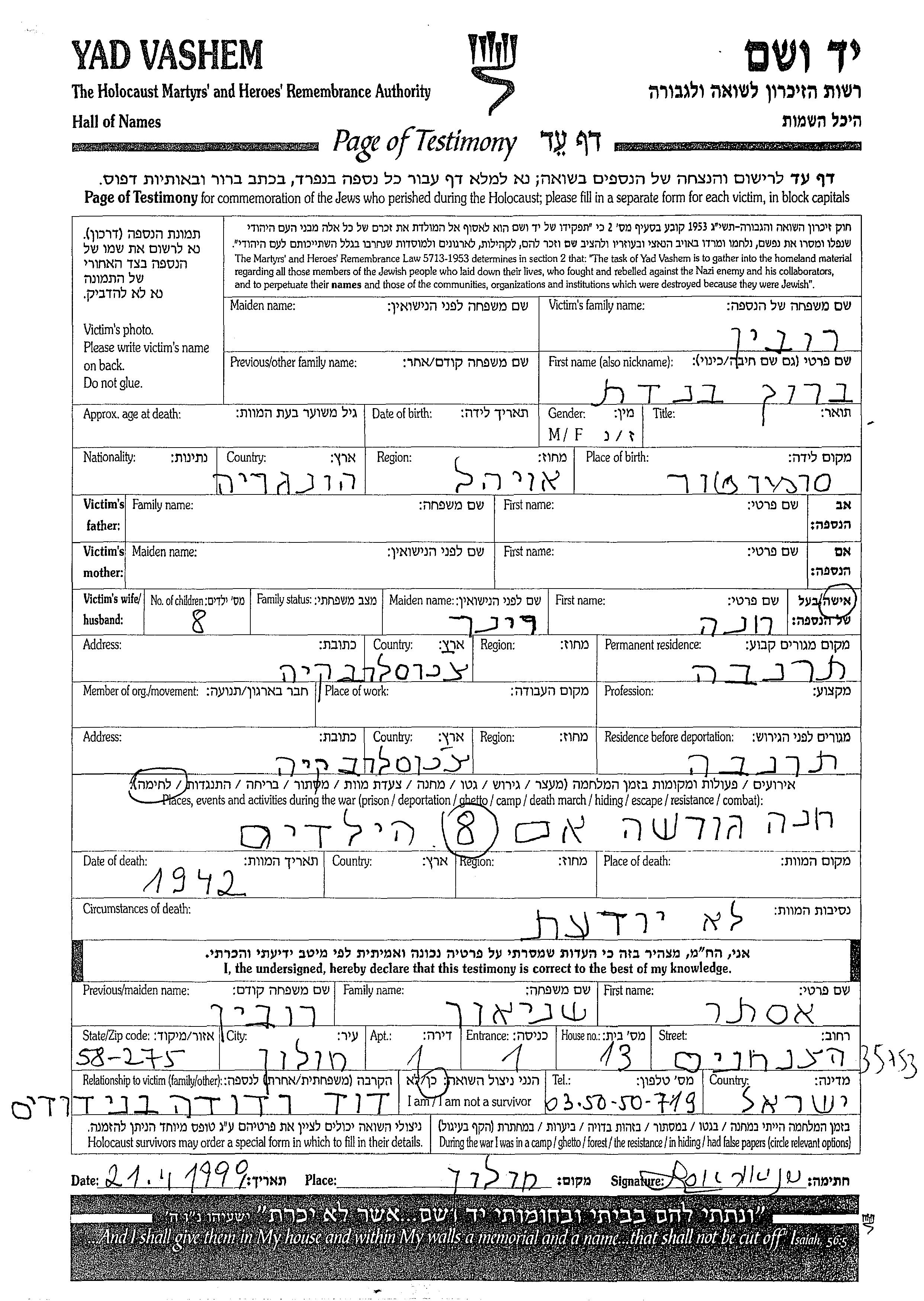 Barukh Benedikt wurde in der Schoah ermordet. Todesort: unbekannt im Jahr 1942.