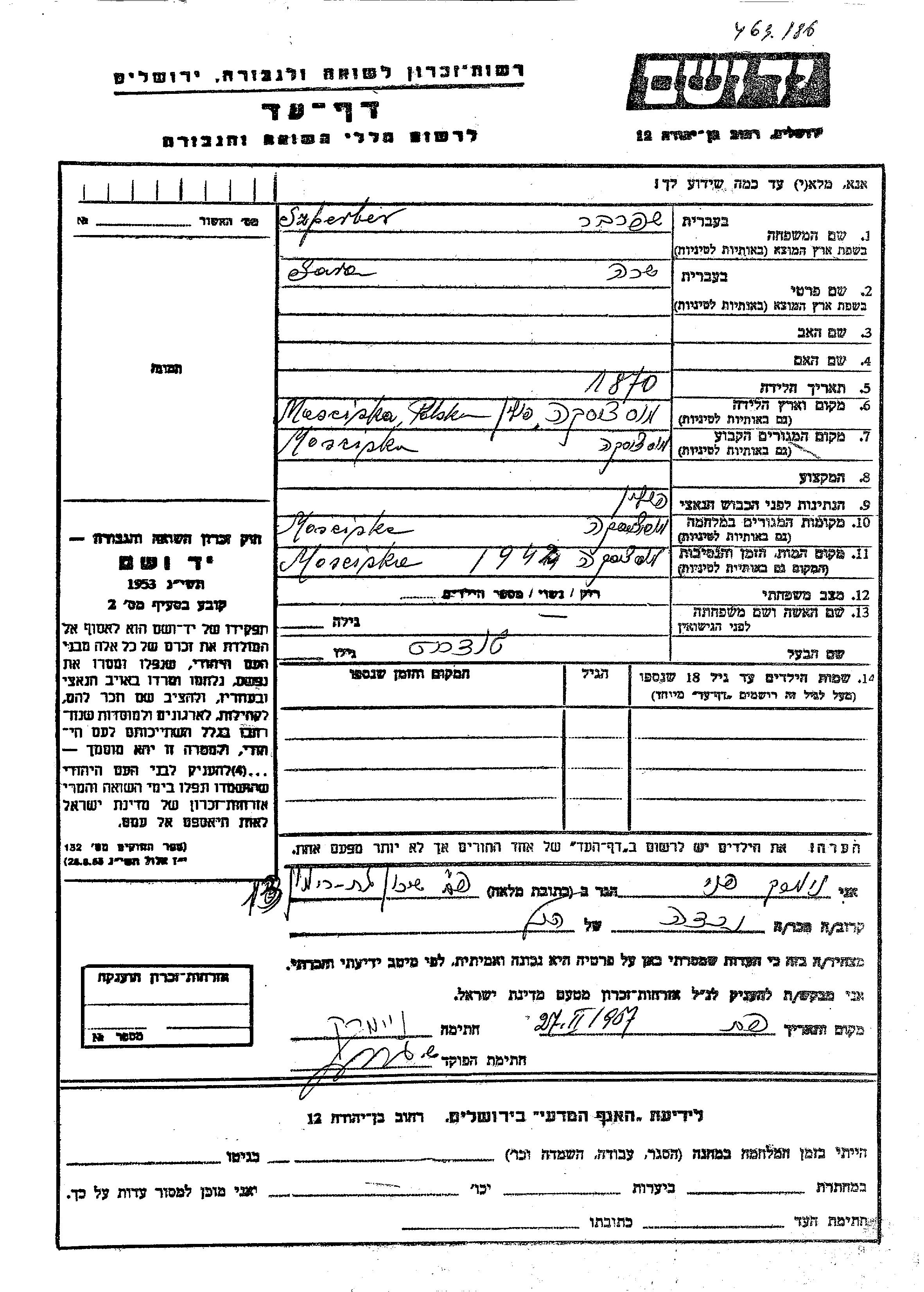 Sperber | Sara | 1862 | Mosciska, Polen | Gedenkblatt |