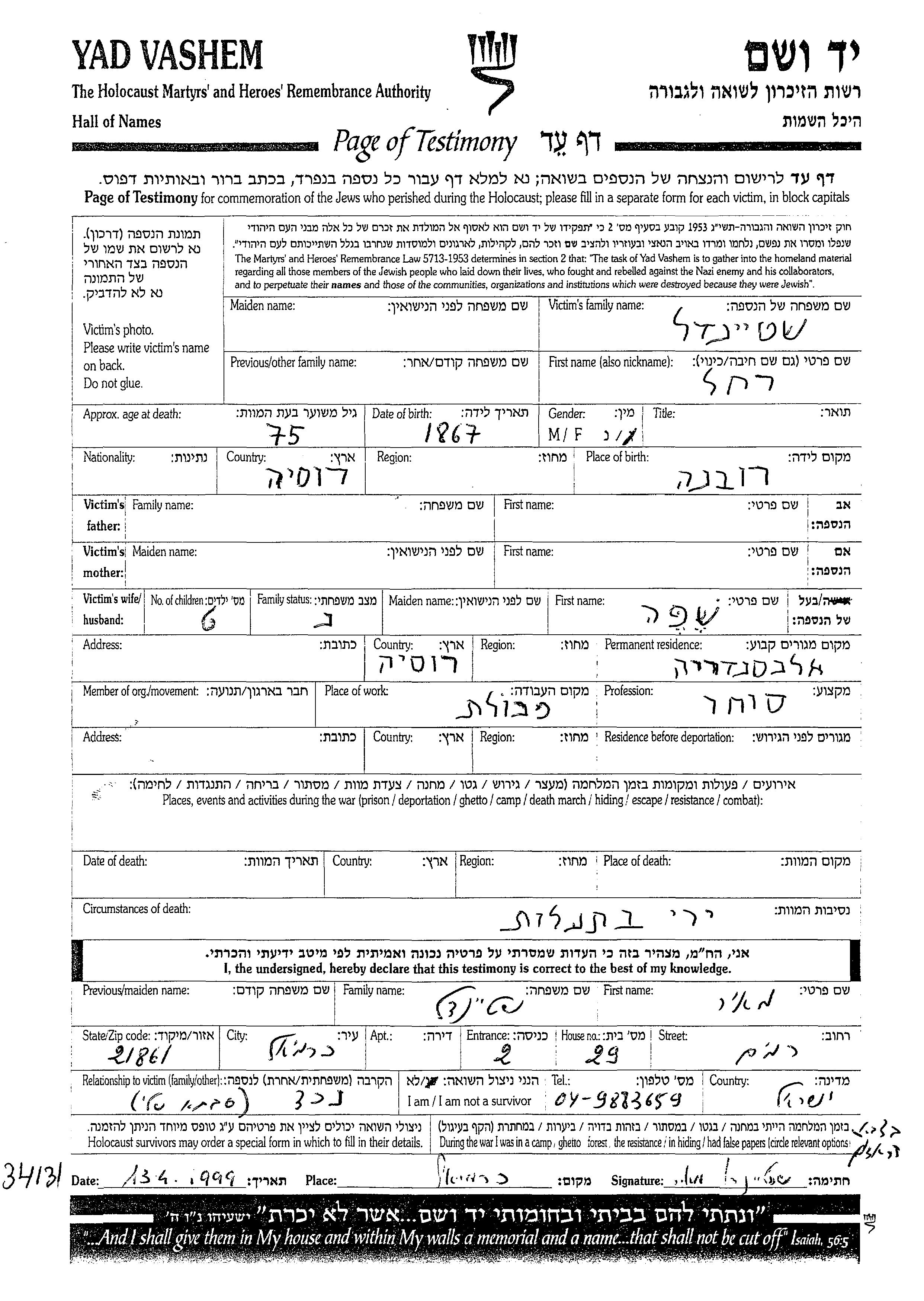 Suche nach einem Todesjahr im Zeitraum der Holocaust: 1933 bis 1945. Bitte wählen Sie 'Exakt' im Auswahlmenü, um nur nach einem einzelnen Jahr zu suchen, alternativ können Sie die flexibleren Optionen '+/- 2 Jahre' oder '+/- 5 Jahre' wählen.