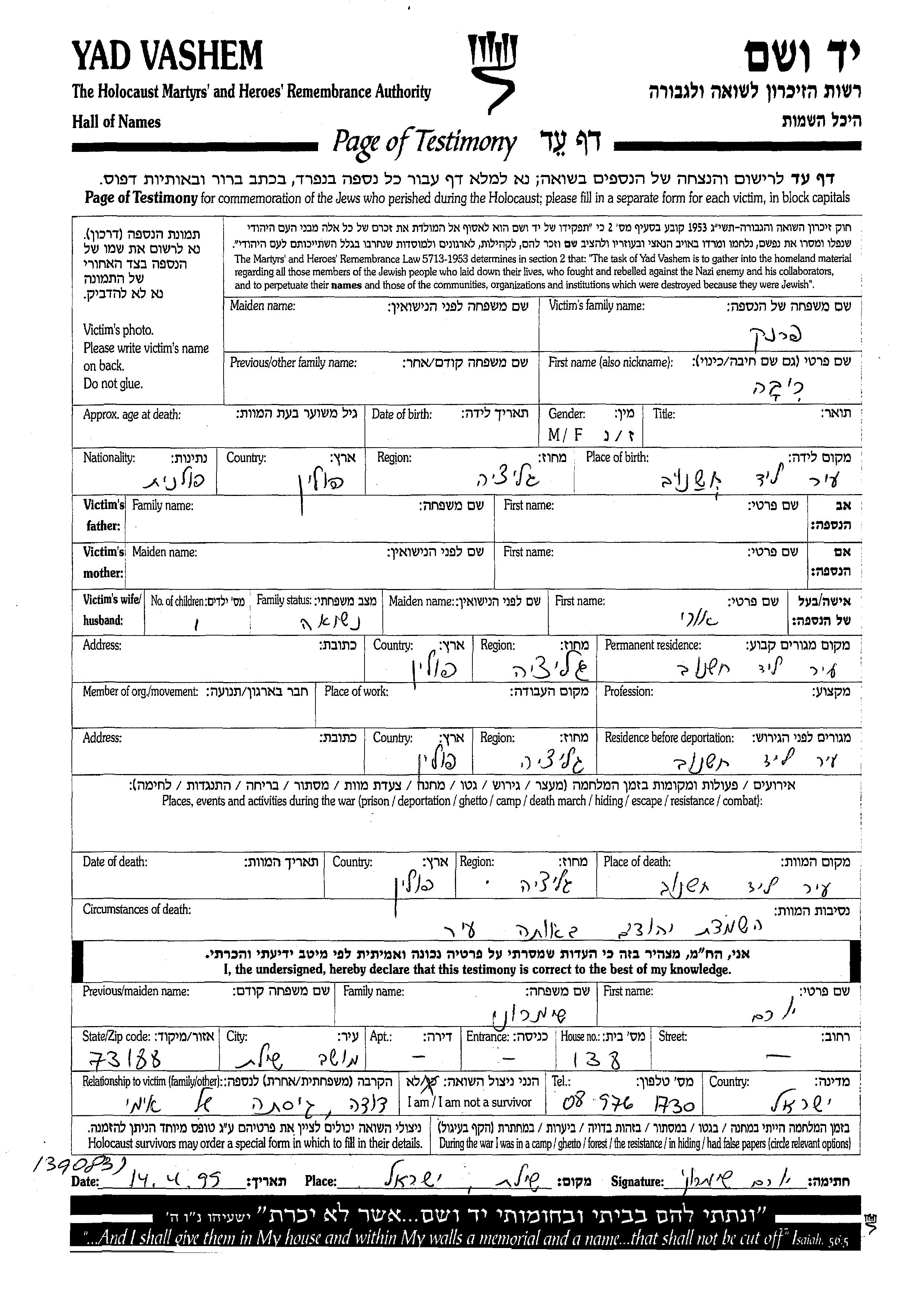 Riva wurde in der Schoah ermordet. Todesort: Chrzanow, Polen.