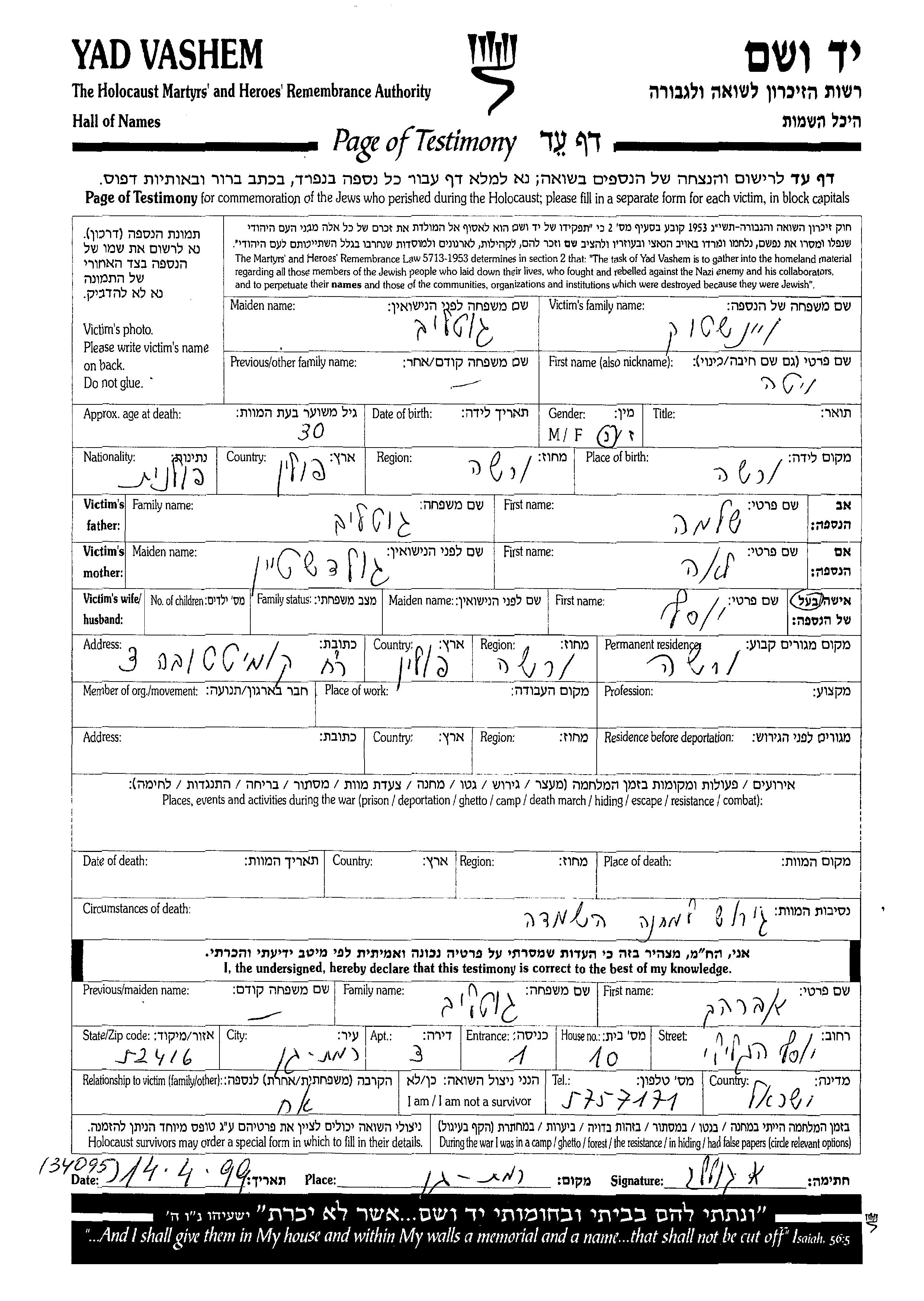 Vita Veinshtok, geb. Gotlib wurde in Varsha, Polen geboren. Sie war die Tochter von Shlomo und Lea. Sie war mit Yosef Verheiratet. Vor dem Zweiten Weltkrieg lebte sie in Varsha, Polen.