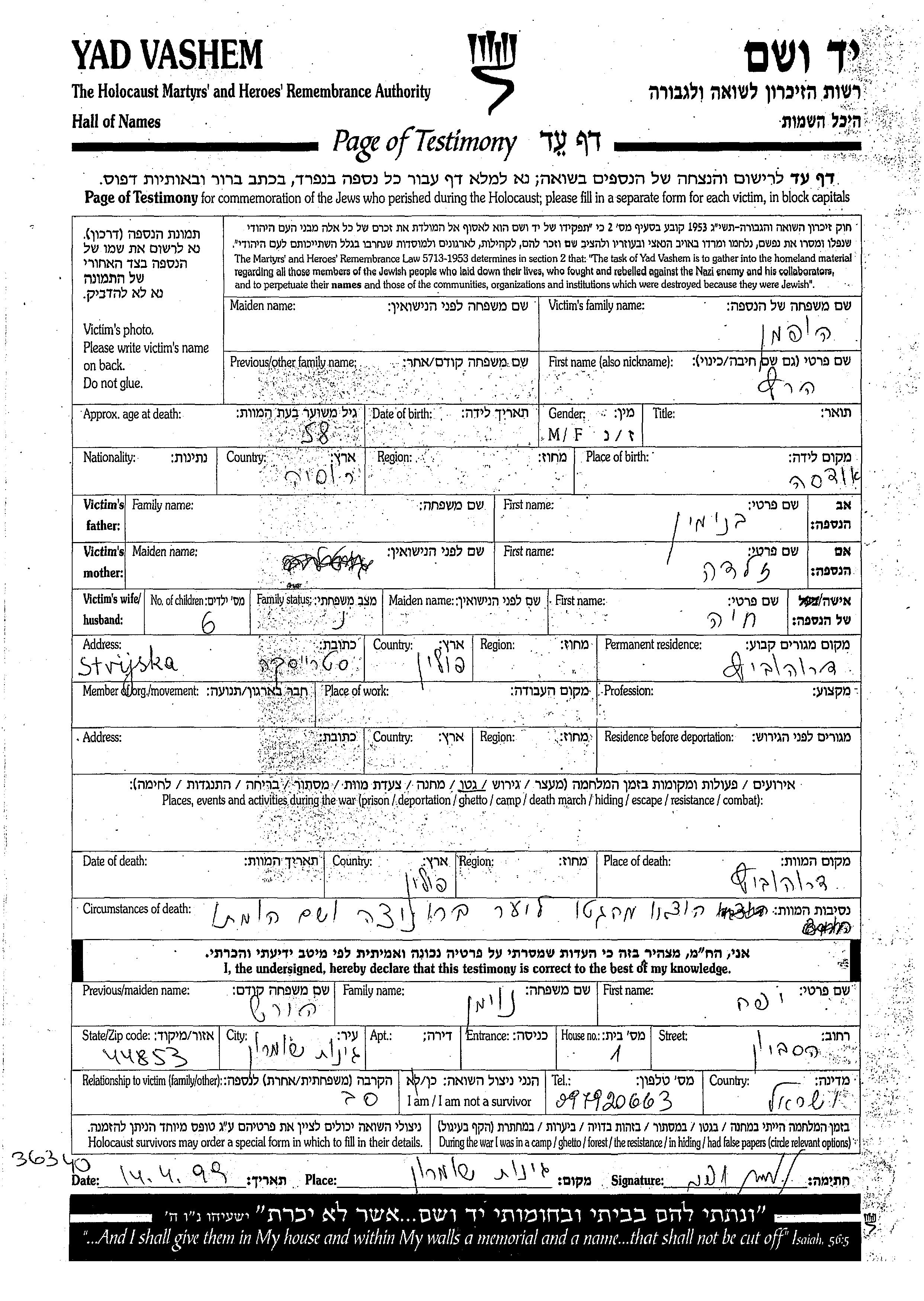 Hertz wurde in der Schoah ermordet. Todesort: Drohobycz, Polen.