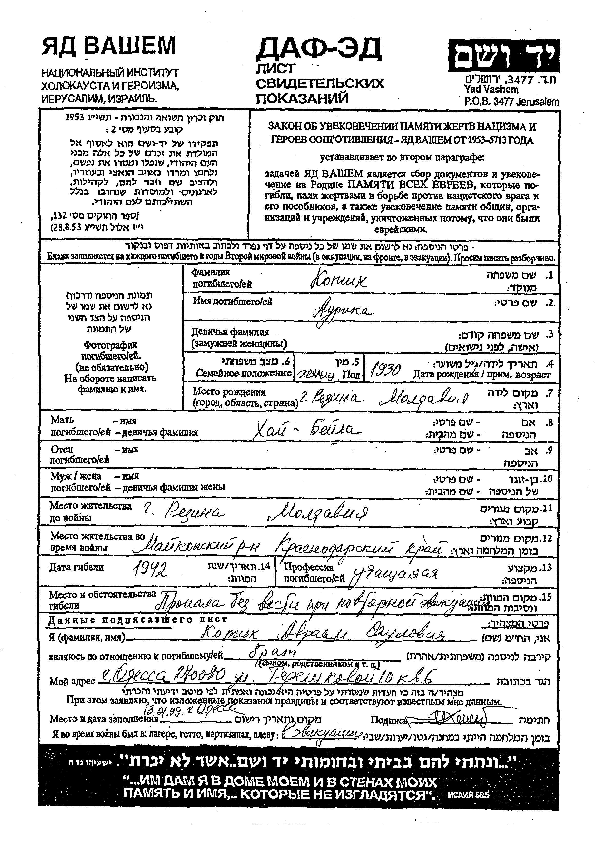 Suche nach einem Todesjahr im Zeitraum der Holocaust: 1933 bis 1945. Bitte wählen Sie 'Exakt' im Auswahlmenü, um nur nach einem einzelnen Jahr zu suchen, alternativ können Sie die flexibleren Optionen '+/- 2 Jahre' oder '+/- 5 Jahre' wählen.