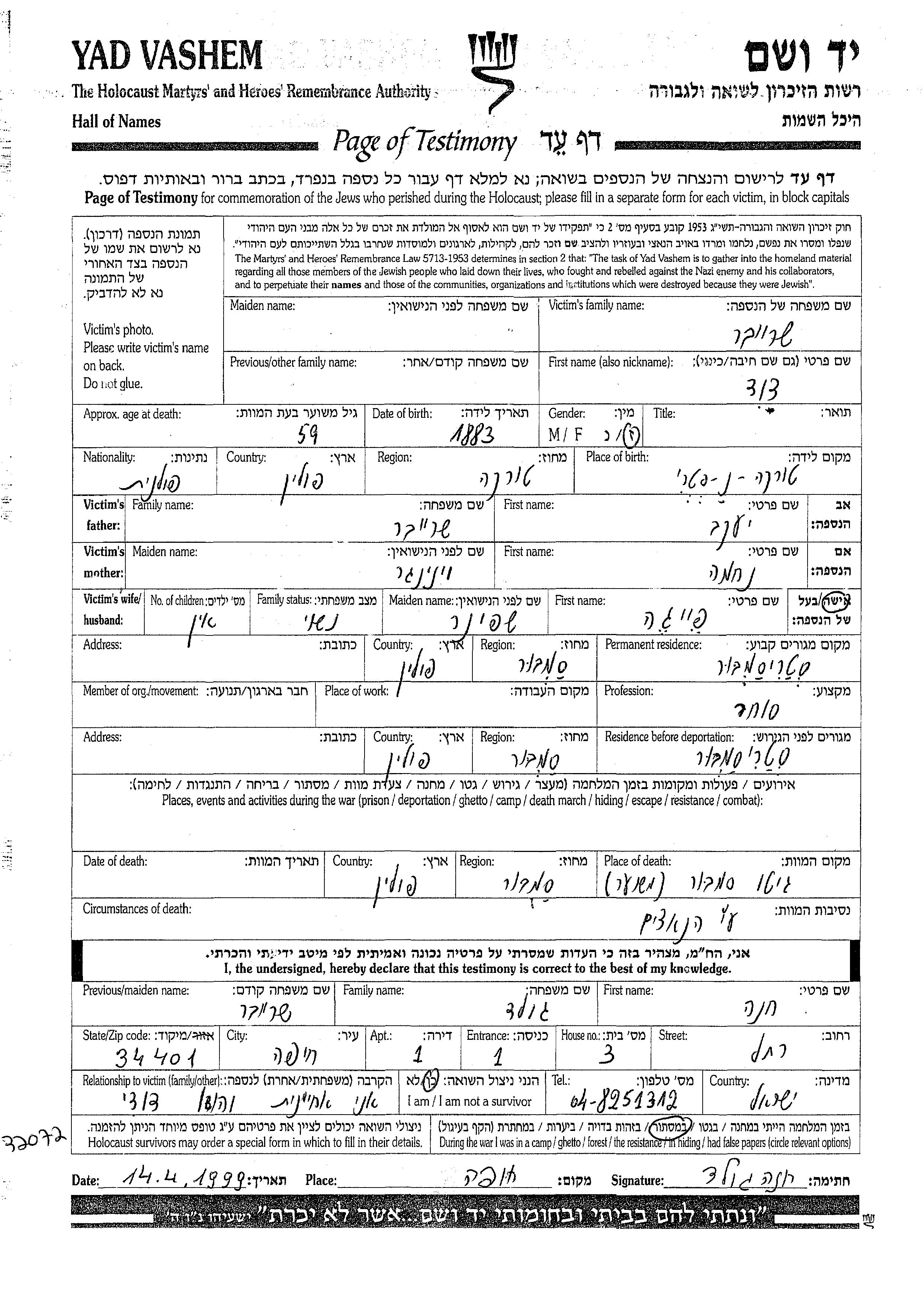 David wurde in der Schoah ermordet. Todesort: Sambor, Polen.