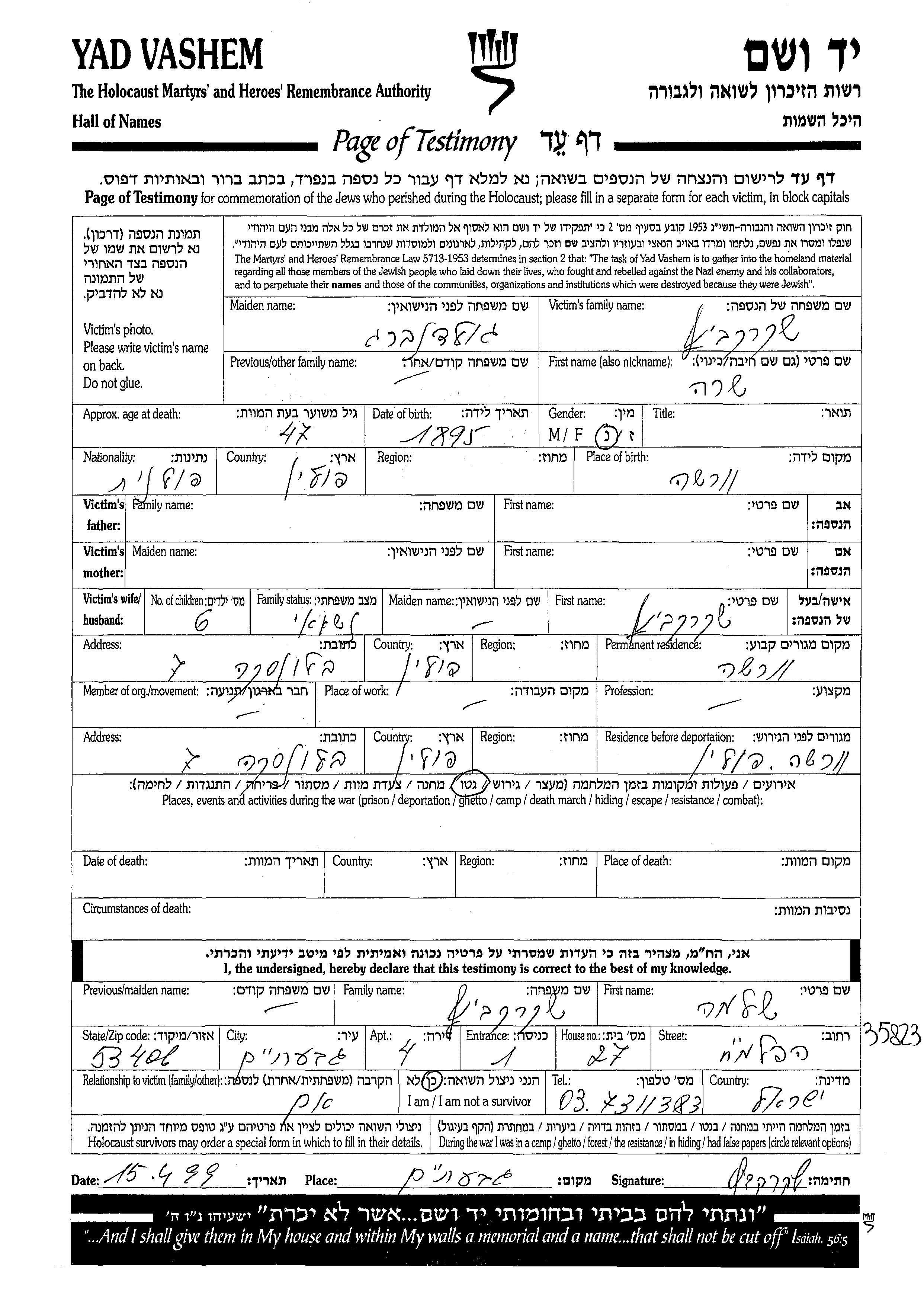Skurkovitz Sara 1895 Warszawa, Polen Gedenkblatt