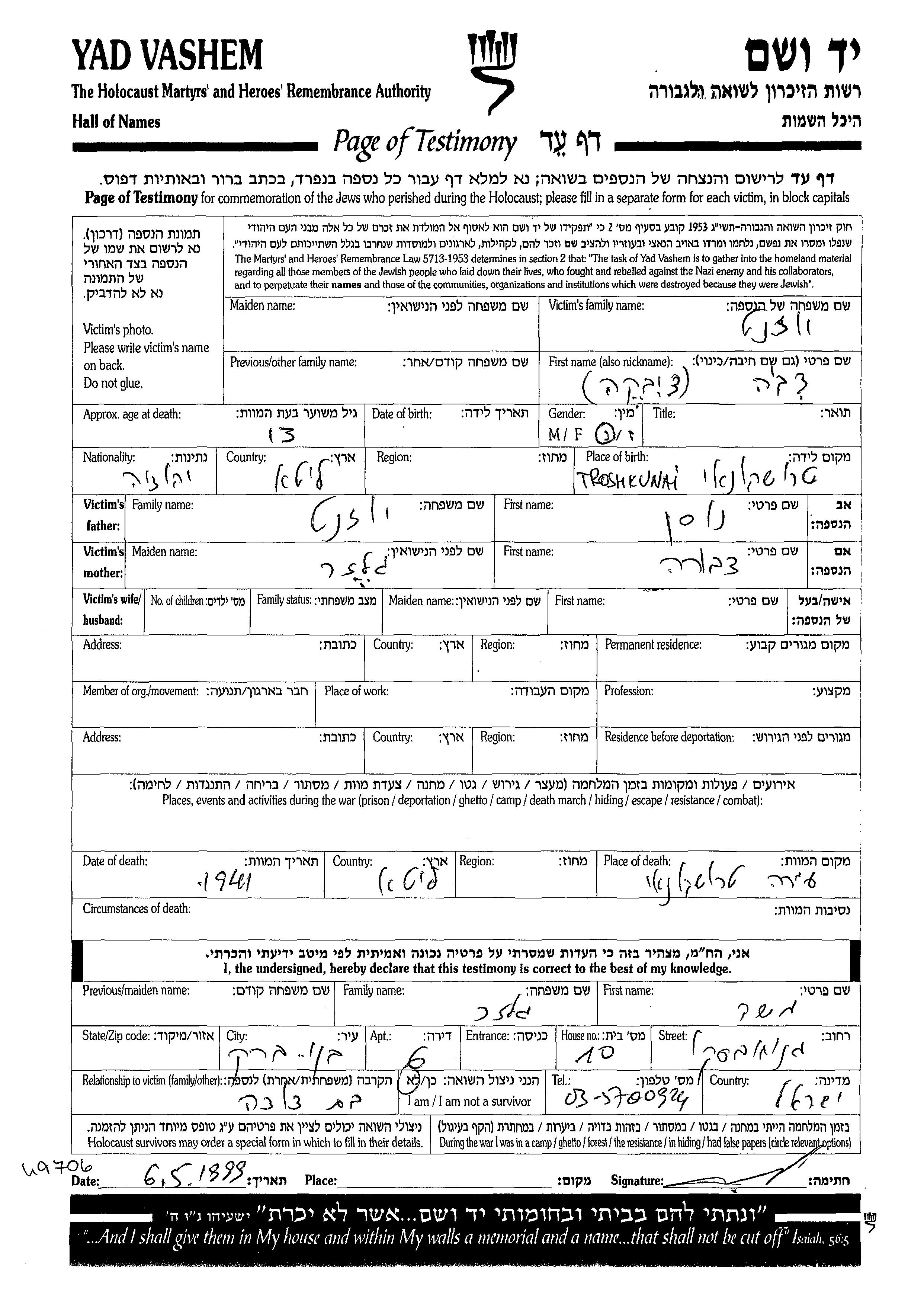 Deba Dobra wurde in der Schoah ermordet. Todesort: Troshkon, Litauen im Jahr 1941.